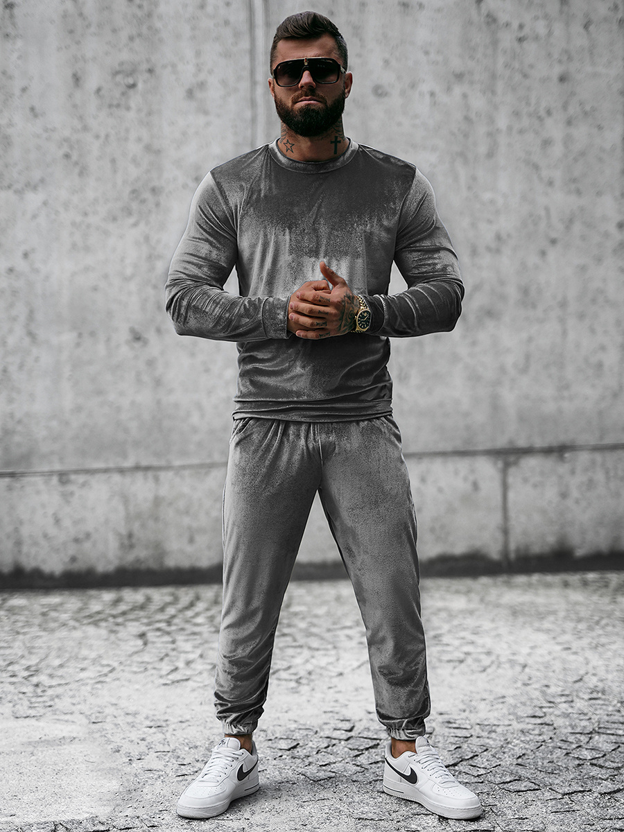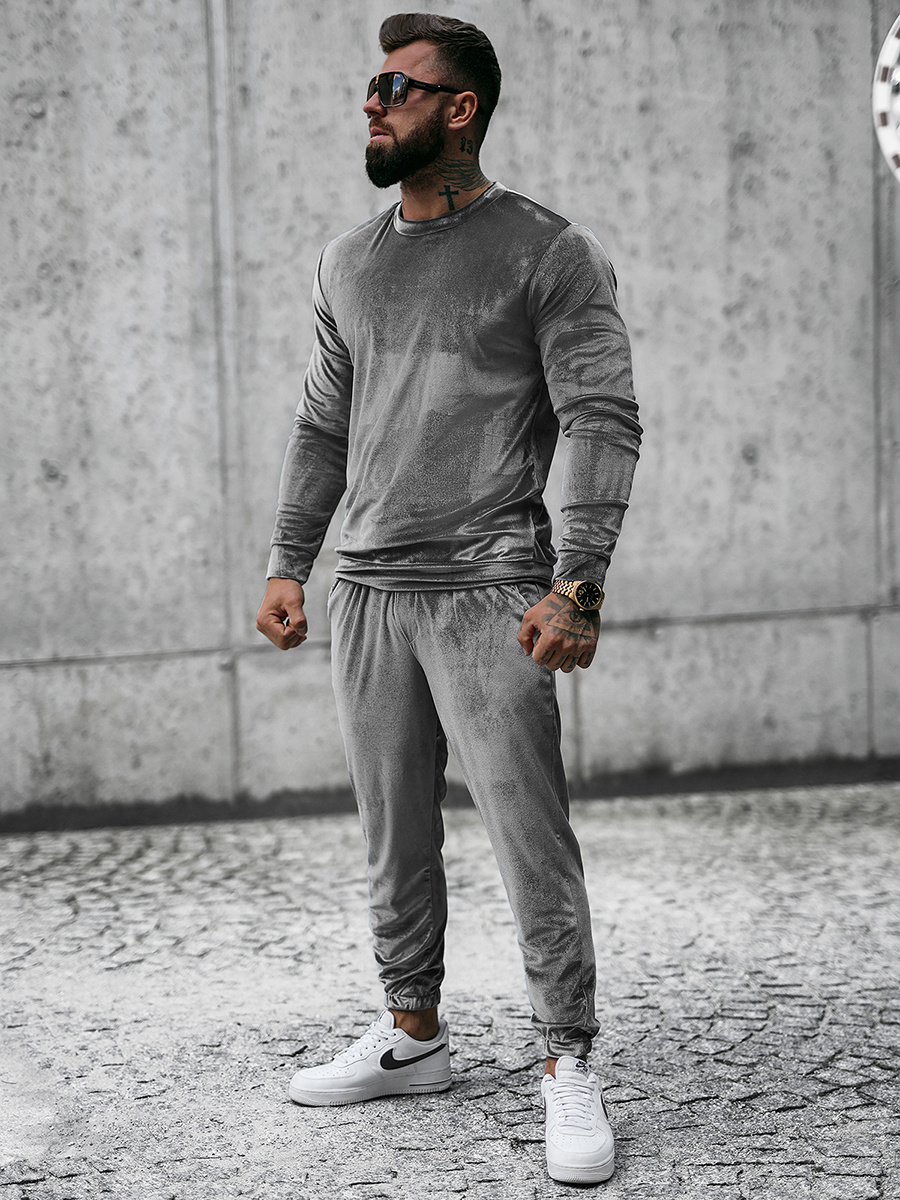 Komplet dresowy męski welurowy szary OZONEE O/D7516