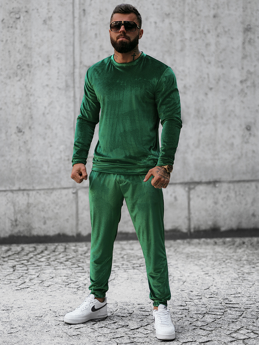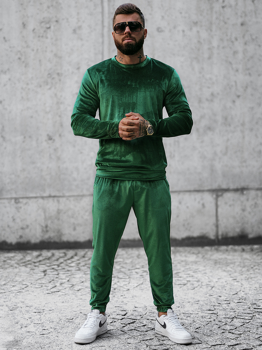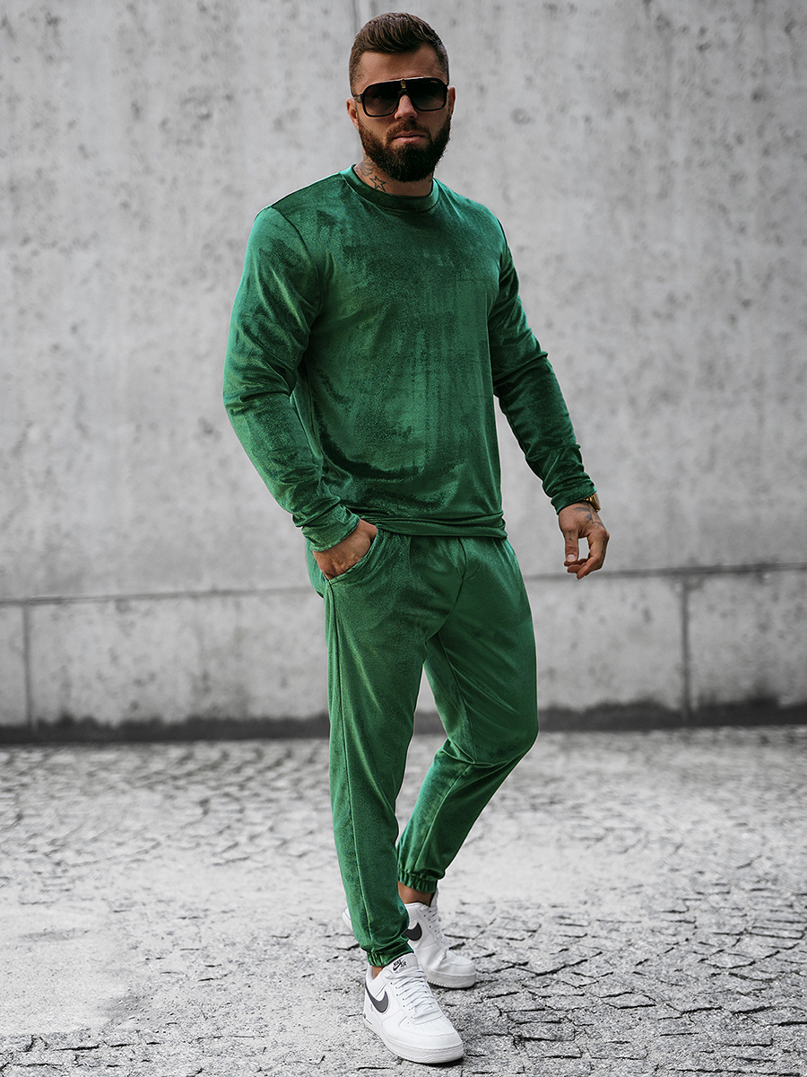 Komplet dresowy męski welurowy zielony OZONEE O/D7516