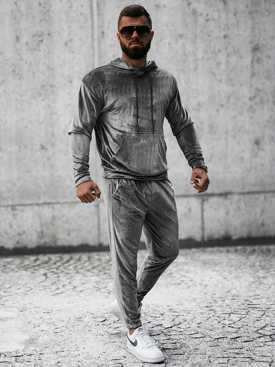 - KOMPLET DRESOWY MĘSKI WELUROWY SKŁADAJĄCY SIĘ Z BLUZY WKŁADANEJ PRZEZ GŁOWĘ Z KAPTUREM ORAZ SPODNI Z KIESZENIAMI PO BOKACH