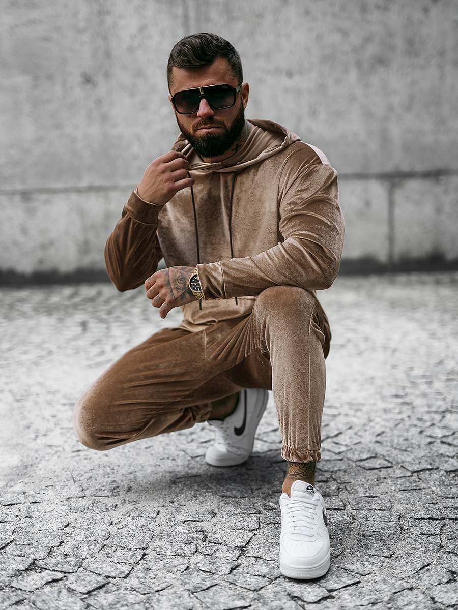 - KOMPLET DRESOWY MĘSKI WELUROWY SKŁADAJĄCY SIĘ Z BLUZY WKŁADANEJ PRZEZ GŁOWĘ Z KAPTUREM ORAZ SPODNI Z KIESZENIAMI PO BOKACH