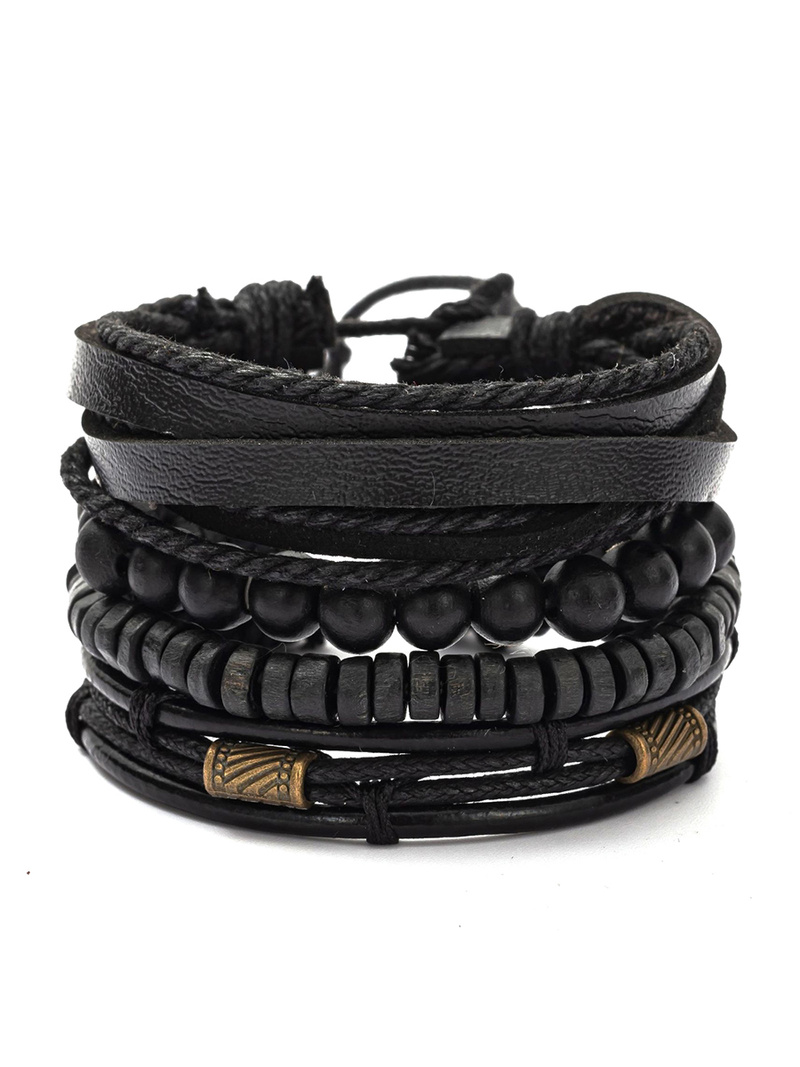 Model ten prezentuje się niezwykle efektownie. Tworzy go zestaw bransoletek wykonanych ze skóry ekologicznej oraz rzemyków. Na przodzie znajdują się ozdobne, metalowe wstawki. Całość jest utrzymana w odcieniach czerni oraz brązu. Obwód bransoletki jest regulowany rzemykami w zakresie od 16 do 24 centymetrów.