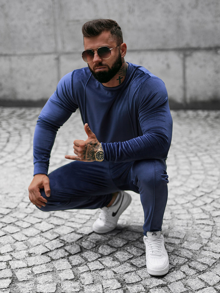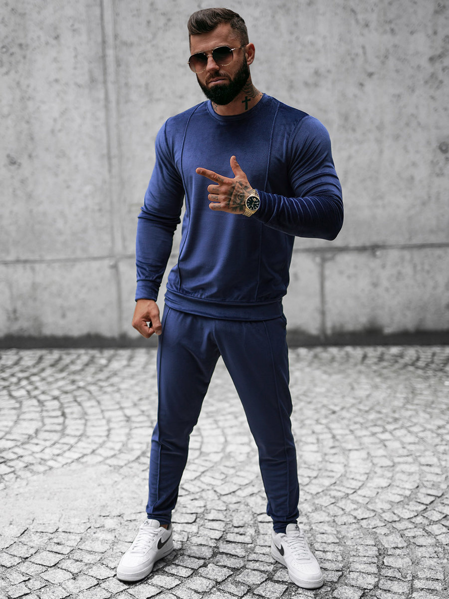 - KOMPLET DRESOWY MĘSKI WELUROWY SKŁADAJĄCY SIĘ Z BLUZY WKŁADANEJ PRZEZ GŁOWĘ ORAZ SPODNI Z KIESZENIAMI PO BOKACH