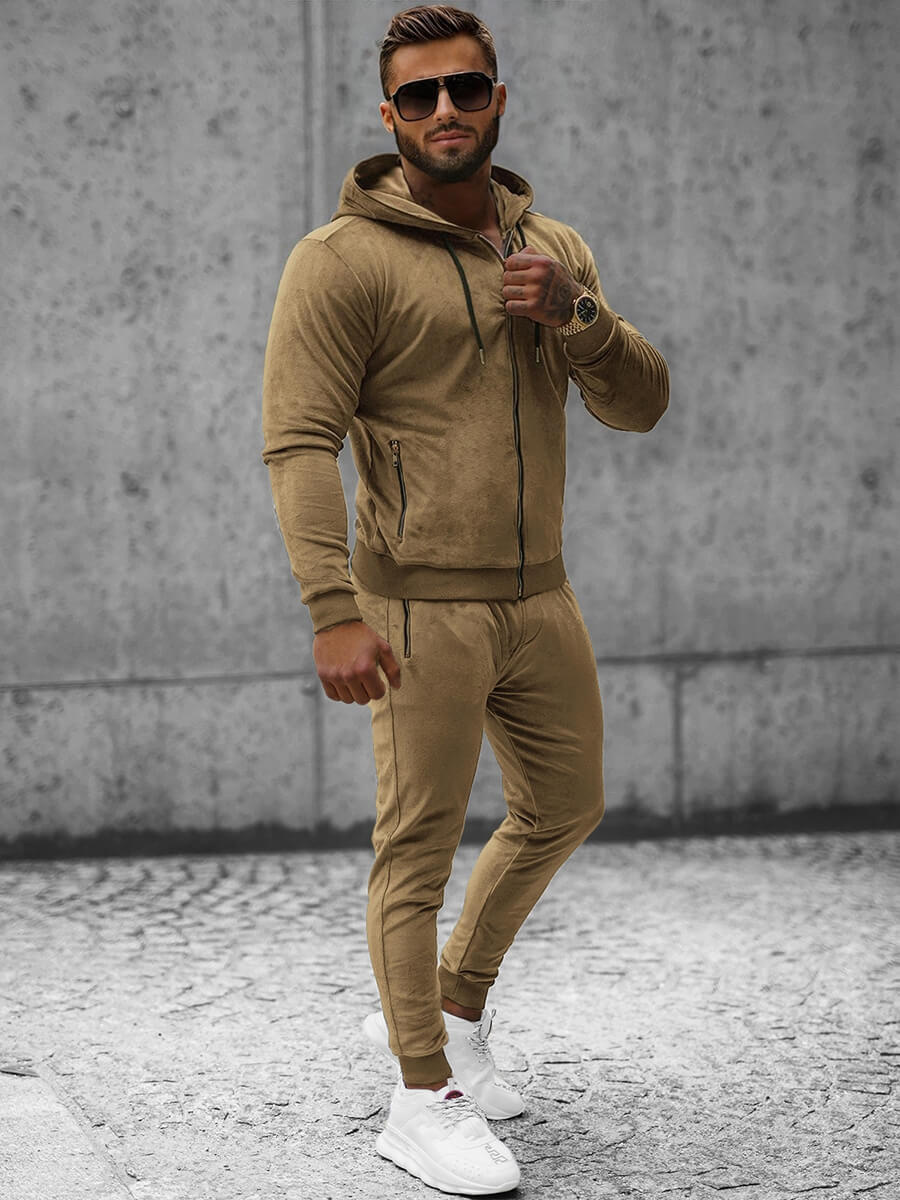 Komplet dresowy męski welurowy camelowy OZONEE O/12137