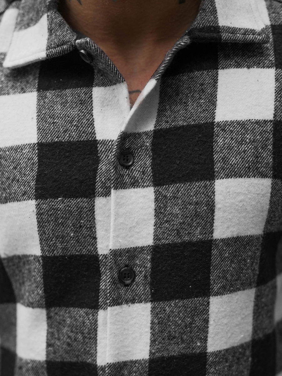 Koszula flanelowa męska czarno-biała OZONEE O/L0149