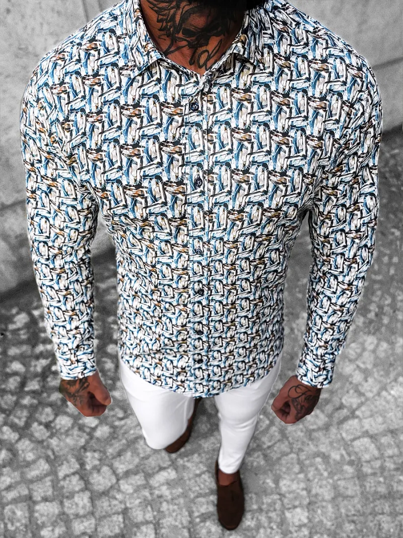 Wzorzysta koszula to ciekawy sposób na ożywienie eleganckiej, męskiej stylizacji. Z powodzeniem można ją założyć na randkę, wesele czy wyjście do klubu. Koszula będzie bardzo dobrze pasowała do innych męskich ubrań dostępnych w asortymencie naszego sklepu internetowego. Można ją zestawić na przykład z marynarką i materiałowymi spodniami. Równie dobrze będzie ona wyglądała razem ze swetrem i jeansami.