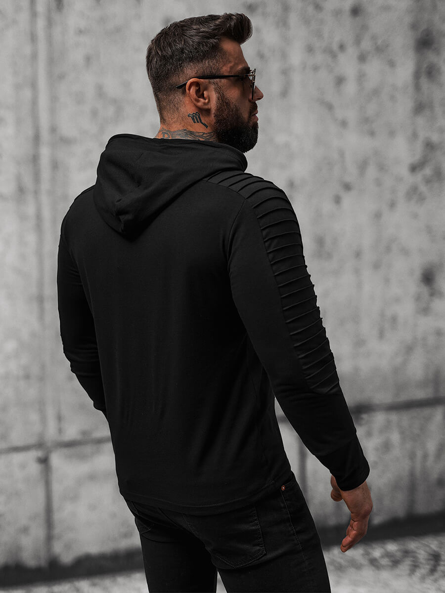Longsleeve męski z kapturem czarny OZONEE O/B258