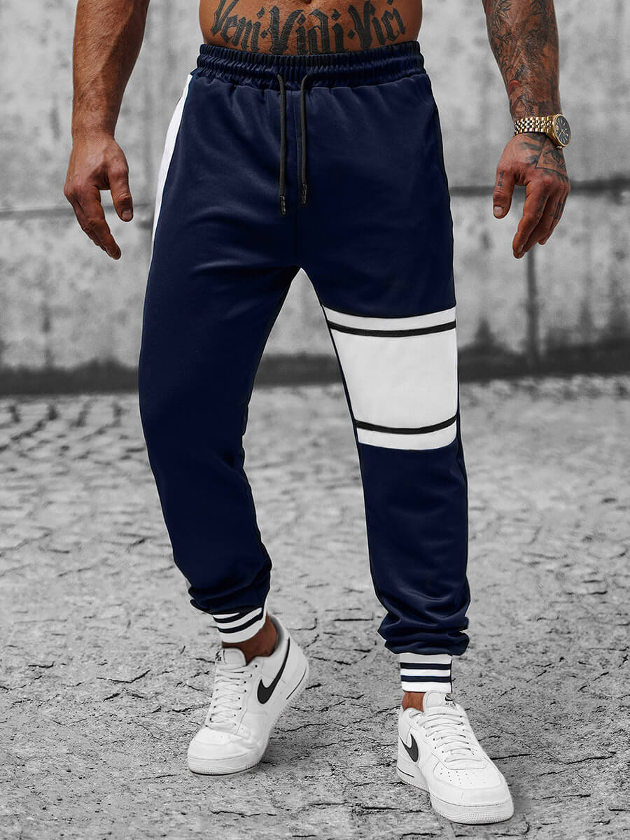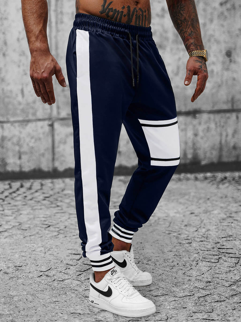 Spodnie pochodzą z naszej najnowszej kolekcji. Po bokach mają kontrastowe wstawki nadające im oryginalnego wyglądu. Pas i nogawki dresów zostały wykończone ściągaczami gwarantującymi wysoki komfort noszenia. Po bokach spodni znajdują się praktyczne kieszenie, do których można schować niezbędne drobiazgi, takie jak klucze, portfel czy telefon. Dresy zostały wyprodukowane z wysokiej jakości poliestru, co sprawia, że ładnie dopasowują się do sylwetki, szybko schną i nie gniotą się.