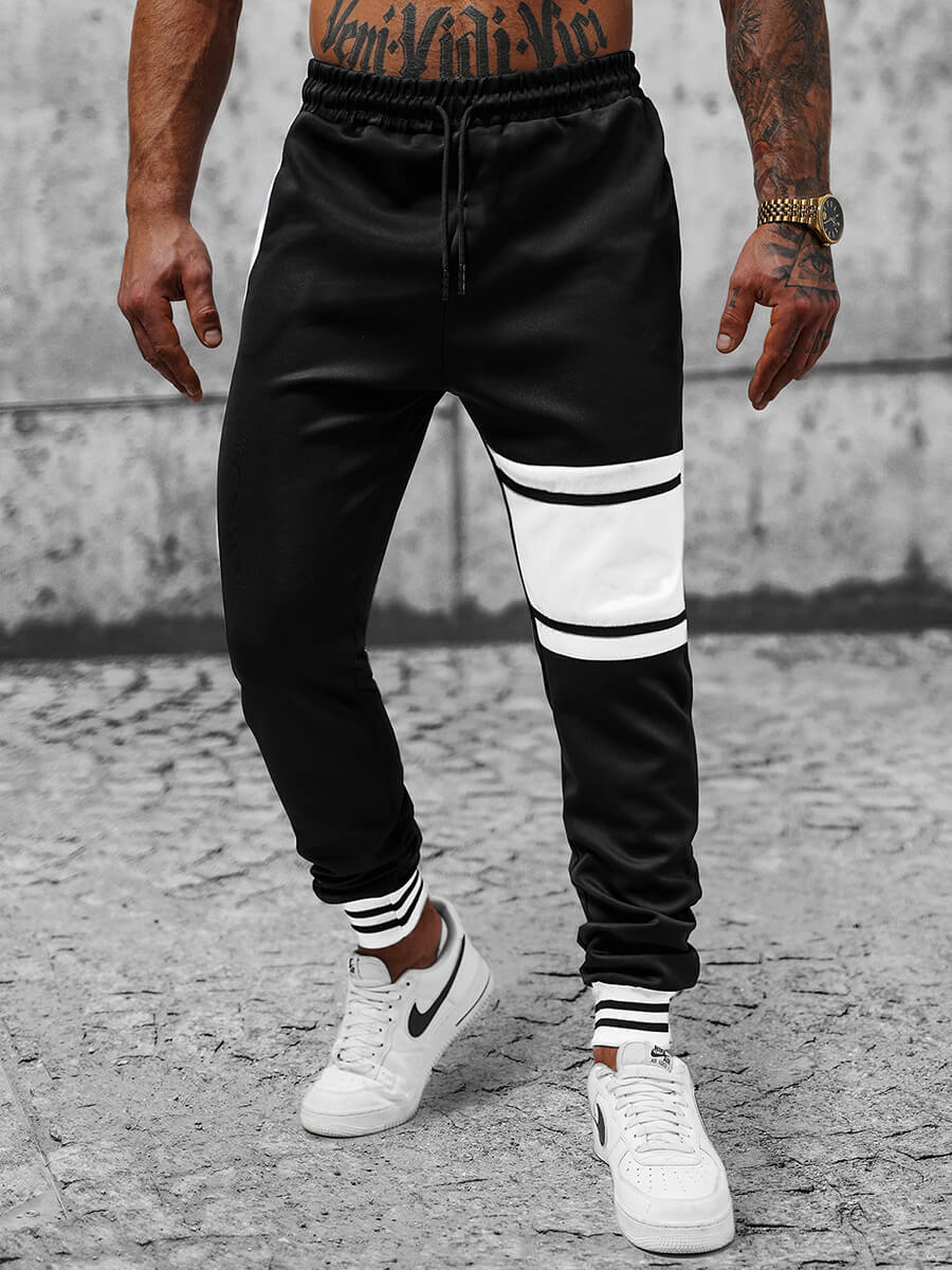 Spodnie pochodzą z naszej najnowszej kolekcji. Po bokach mają kontrastowe wstawki nadające im oryginalnego wyglądu. Pas i nogawki dresów zostały wykończone ściągaczami gwarantującymi wysoki komfort noszenia. Po bokach spodni znajdują się praktyczne kieszenie, do których można schować niezbędne drobiazgi, takie jak klucze, portfel czy telefon. Dresy zostały wyprodukowane z wysokiej jakości poliestru, co sprawia, że ładnie dopasowują się do sylwetki, szybko schną i nie gniotą się.