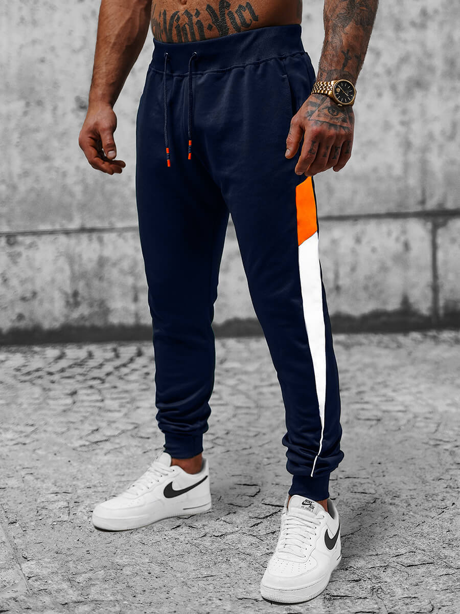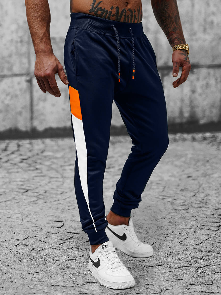 Spodnie pochodzą z nowej kolekcji. Po bokach mają kontrastowe wstawki, dzięki którym prezentują się bardzo oryginalnie. Pas i nogawki dresów zostały wykończone ściągaczami, które nadają im sportowego wyglądu. Spodnie posiadają kieszenie po bokach, do których można schować drobiazgi, takie jak klucze, portfel czy telefon. Zostały wykonane z wysokiej jakości poliestru, dzięki czemu ładnie dopasowują się do sylwetki, nie gniotą się i szybko schną.