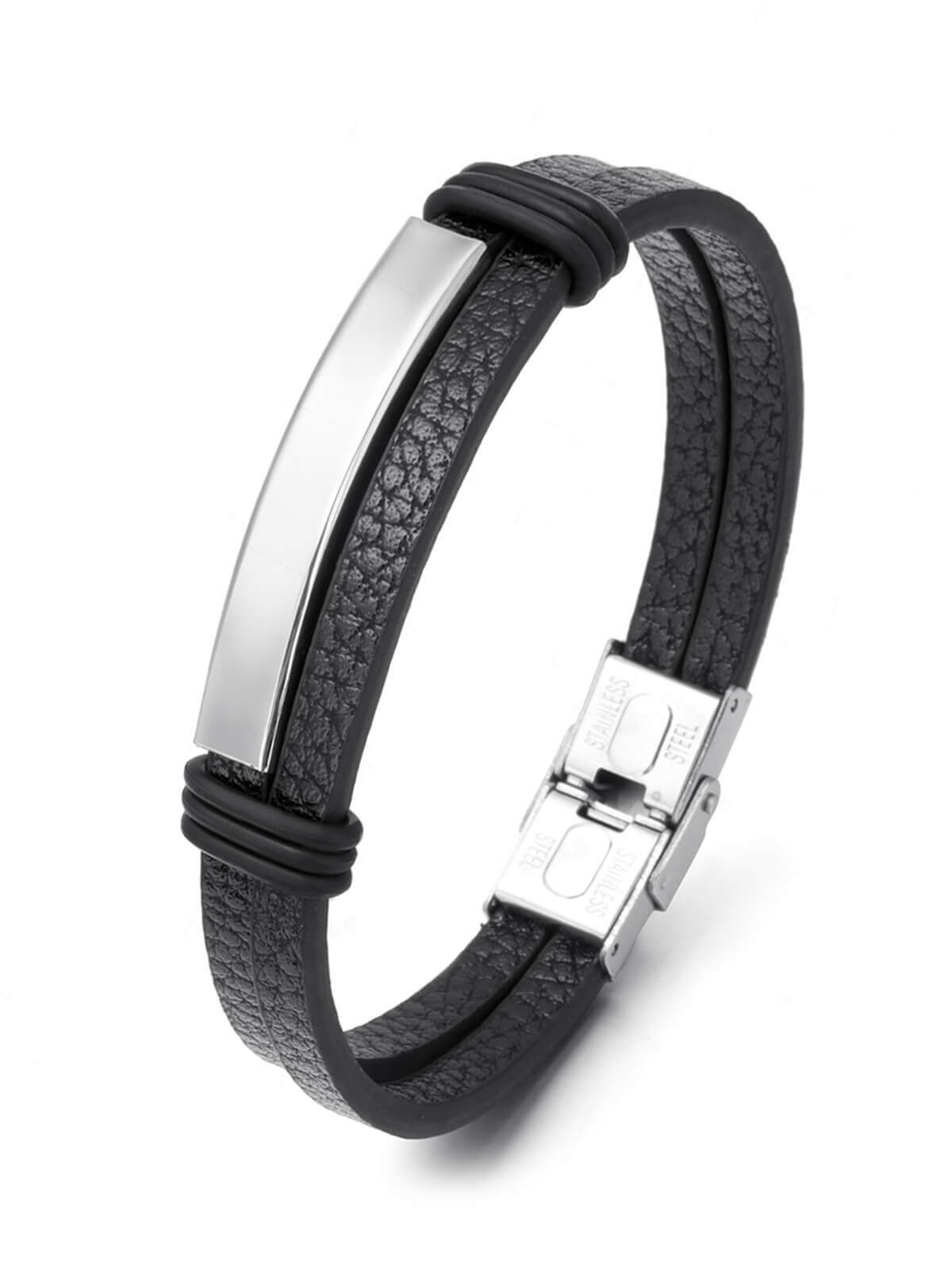 Bransoletka pochodzi z nowej kolekcji. Została wyprodukowana z trwałej, wytrzymałej, odpornej na uszkodzenia, elegancko prezentującej się skóry syntetycznej i posiada efektowne, metalowe wstawki w kolorach czarnym oraz srebrnym. Bransoletka jest zapinana na wygodny w użyciu, metalowy element. Jej obwód to 20 cm.