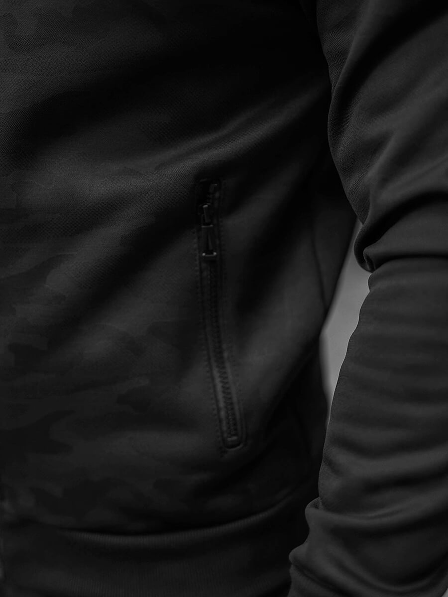 Komplet został wyprodukowany z poliestru, dzięki czemu ładnie dopasowuje się do sylwetki i nie gniecie się. W jego skład wchodzą 2 elementy. Jednym z nich jest rozpinana bluza z kapturem, drugim — spodnie z kieszeniami po bokach. Góra oraz dół zestawu została wykończona ściągaczami. Oryginalnego wyglądu nadaje kompletowi zdobiący go wzór moro oraz wstawki z ekoskóry.