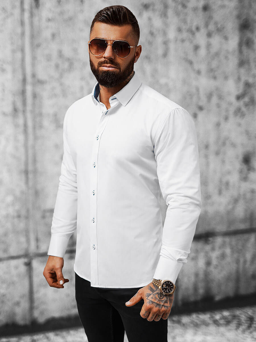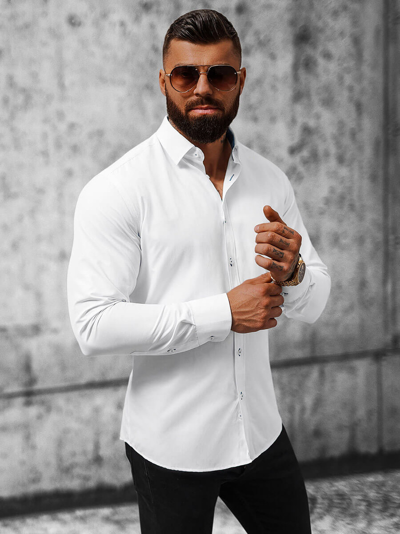 W każdej męskiej garderobie powinna się znaleźć co najmniej jedna taka tradycyjna koszula w kolorze białym. To uniwersalny, ponadczasowy element odzieży, który nigdy nie wychodzi z mody i pasuje wszystkim, bez względu na typ sylwetki czy wiek. Biała koszula nadaje się na rozmaite okazje. Można ją założyć na rodzinną uroczystość typu wesele, bankiet, randkę, wyjście do teatru lub opery czy rozmowę kwalifikacyjną. Bardzo dobrze będzie ona pasowała do marynarek oraz spodni garniturowych z naszego sklepu.