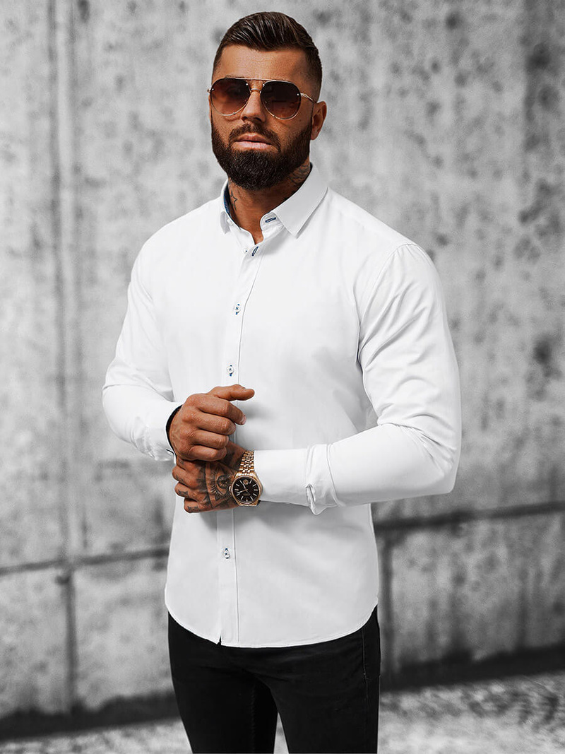 Biała koszula to must have w szafie każdego mężczyzny, bez względu na wiek czy typ sylwetki. Jest ona niezwykle uniwersalna i nadaje się na różne okazje. Można ją założyć na randkę, rozmowę kwalifikacyjną, branżowy event czy uroczystość rodzinną, taką jak wesele. Kupując taką koszulę można mieć pewność, że równie dobrze co dziś będzie się prezentowała za kilka sezonów. Znakomicie będzie ona pasowała do marynarek i spodni garniturowych z naszej oferty.
