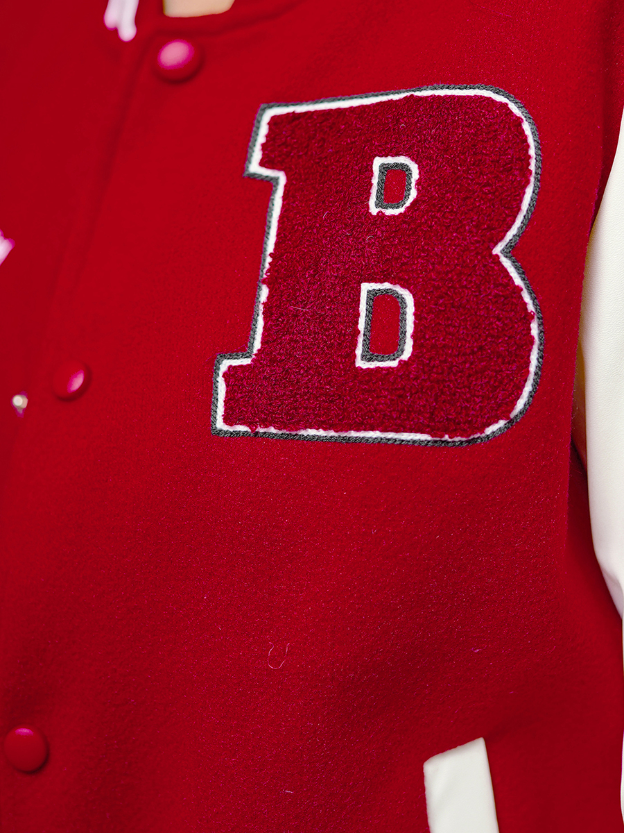 Kurtka pochodzi z najnowszej kolekcji. Ma fason typu collage. Jest zapinana na napy. Oryginalnego wyglądu nadają jej rękawy wykonane z materiału imitującego skórę. Po bokach ma kieszenie, do których można schować klucze, telefon czy portfel. Dół oraz rękawy kurtki zostały wykończone ściągaczami. Została ona wyprodukowana z poliestru, dzięki czemu ładnie układa się na ciele, nie gniecie się, jest odporna na zaplamienia i szybko schnie.
