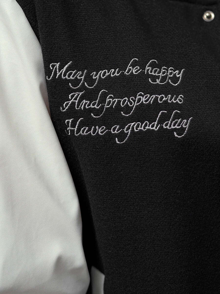 Kurtka pochodzi z najnowszej kolekcji. Ma fason typu collage. Jest zapinana na napy. Oryginalnego wyglądu nadają jej rękawy wykonane z materiału imitującego skórę. Po bokach ma kieszenie, do których można schować klucze, telefon czy portfel. Dół oraz rękawy kurtki zostały wykończone ściągaczami. Została ona wyprodukowana z poliestru, dzięki czemu ładnie układa się na ciele, nie gniecie się, jest odporna na zaplamienia i szybko schnie.