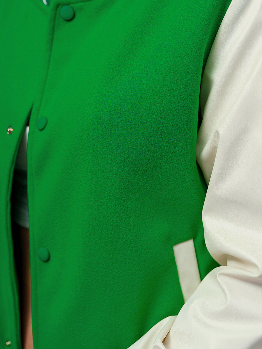 - POSIADA RĘKAWY Z MATERIAŁU IMITUJĄCEGO SKÓRĘ