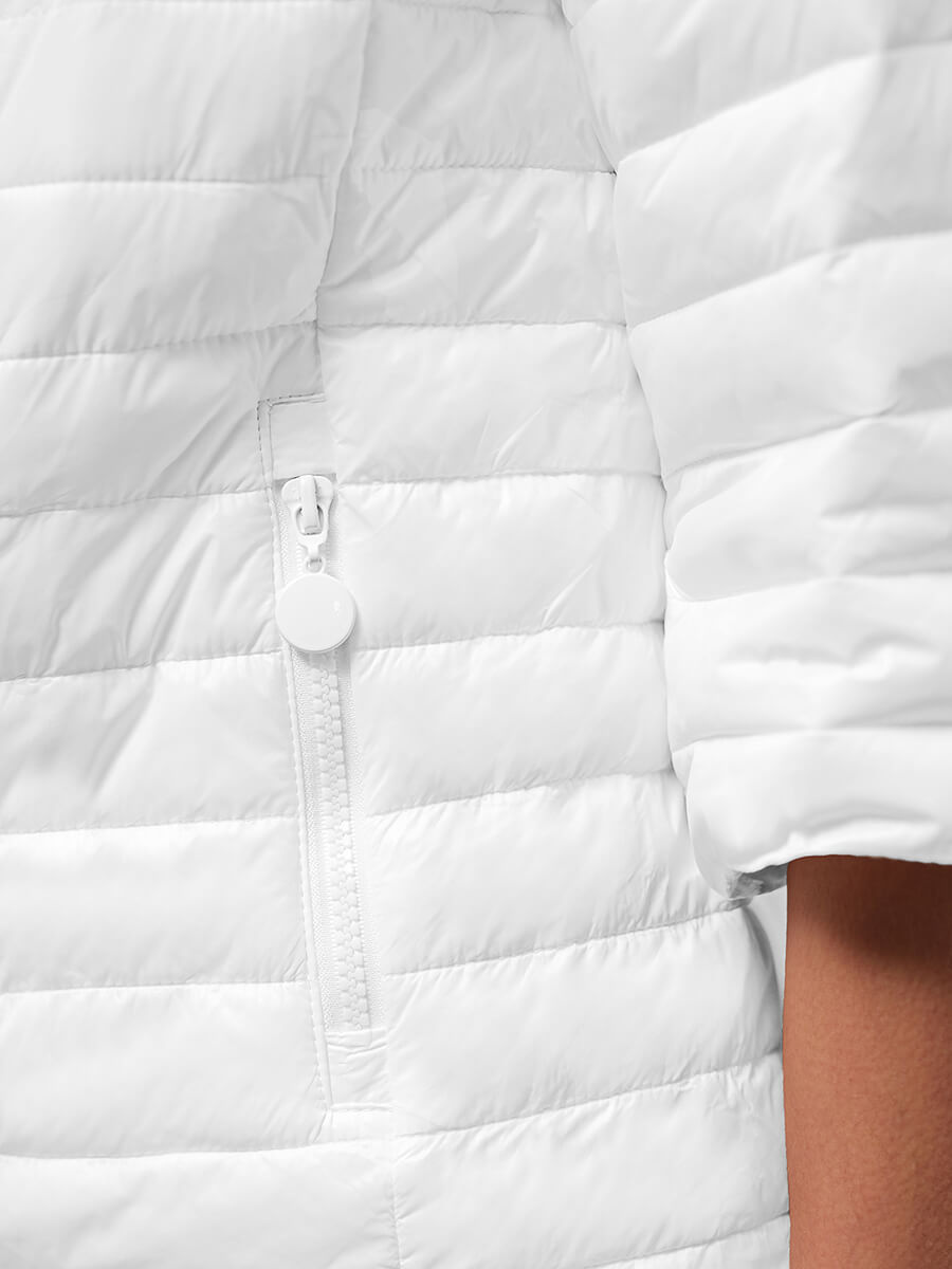Kurtka pochodzi z naszej najnowszej kolekcji. Jest zapinana na zamek błyskawiczny. W przeciwieństwie do tradycyjnych modeli, ma krótki rękaw. Oryginalnego wyglądu dodają jej także pokrywające ją pikowania. Po bokach znajdują się kieszenie na zamek, do których można schować portfel, klucze, telefon czy inne drobne przedmioty. Kurtka została wyprodukowana z nylonu, a jej podszewka - z poliestru. Sprawia to, że ładnie układa się ona na ciele, nie gniecie się i szybko schnie.