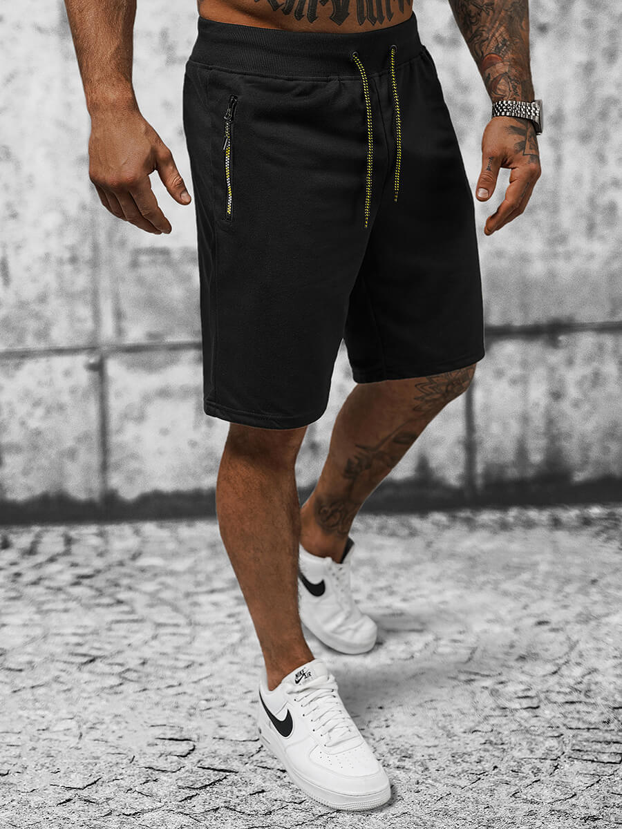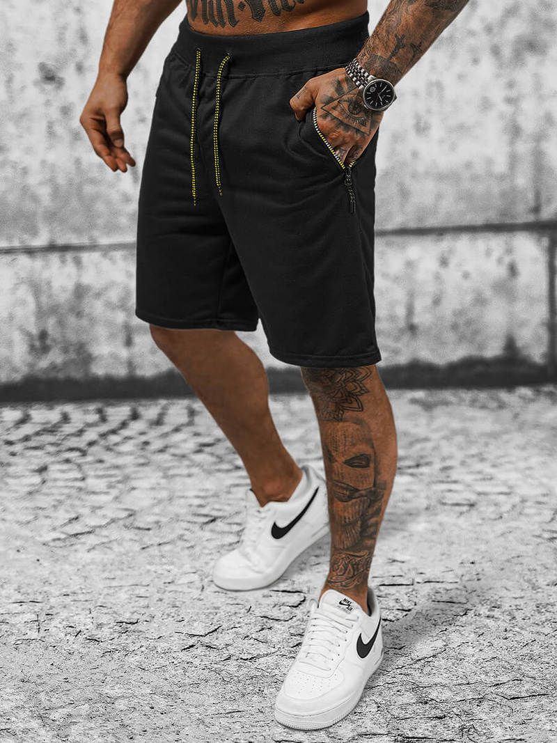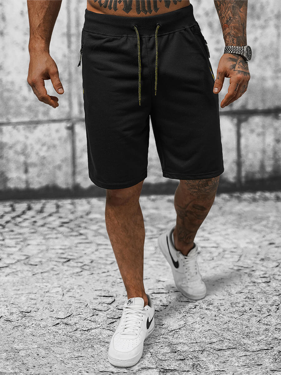 Spodenki pochodzą z naszej najnowszej kolekcji. Mają praktyczny ściągacz w pasie chroniący je przed przekręcaniem się czy zsuwaniem. Po bokach znajdują się kieszenie na zamek błyskawiczny, do których można schować klucze, portfel, telefon czy inne drobne przedmioty. Spodenki zostały wyprodukowane z wysokiej jakości bawełny oraz poliestru, co sprawia, że są wygodne w noszeniu, przyjemne w dotyku, ładnie dopasowują się do sylwetki, nie gniotą się i szybko schną.