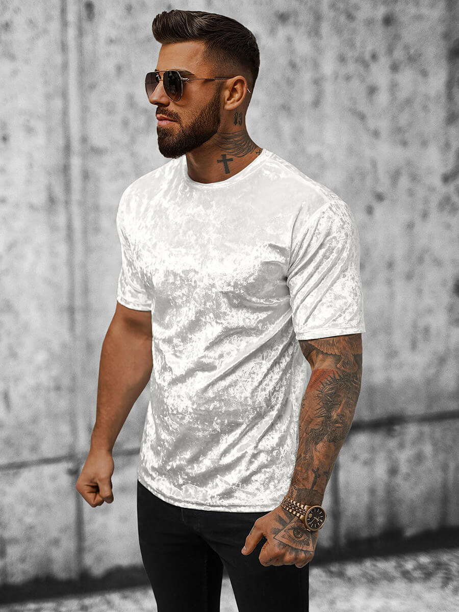 Welurowa koszulka to ciekawa alternatywa dla tradycyjnej, gładkiej wersji. Nadaje ona stylizacji oryginalnego charakteru, skutecznie przykuwając wzrok. Taki t-shirt jest bardzo uniwersalny i nadaje się na różne okazje. Możesz go założyć na spotkanie ze znajomymi, koncert czy randkę. Koszulka będzie się bardzo dobrze komponowała z innymi męskimi produktami z asortymentu naszego sklepu internetowego. Można ją zestawić na przykład z kurtką typu bomberka oraz jeansami.