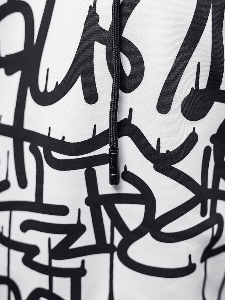 Kurtka pochodzi z naszej najnowszej kolekcji. Jest wkładana przez głowę i ma kieszeń typu kangurka oraz praktyczny kaptur chroniący przed chłodem, wiatrem i deszczem. Jej dół i rękawy zostały wykończone ściągaczami. Bluzę zdobi efektowny, czarno — biały nadruk. Została ona wyprodukowana z wysokiej jakości poliestru, co sprawia, że ładnie dopasowuje się do sylwetki, nie rozciąga z czasem, nie gniecie i jest odporna na zaplamienia.