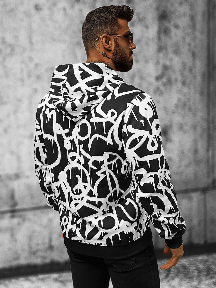 Bluza pochodzi z naszej nowej kolekcji. Jest zakładana przez głowę i ma praktyczny kaptur, który skutecznie chroni przed wiatrem, deszczem i chłodem. Bluza posiada także kieszonkę typu kangurka oraz ściągacze na dole i przy rękawach. Jej przód oraz tył zdobi oryginalny, przykuwający wzrok, czarno-biały nadruk. Bluza została wyprodukowana w całości z poliestru, dzięki czemu ładnie dopasowuje się do sylwetki, nie gniecie się, nie rozciąga i jest odporna na uszkodzenia oraz zabrudzenia.