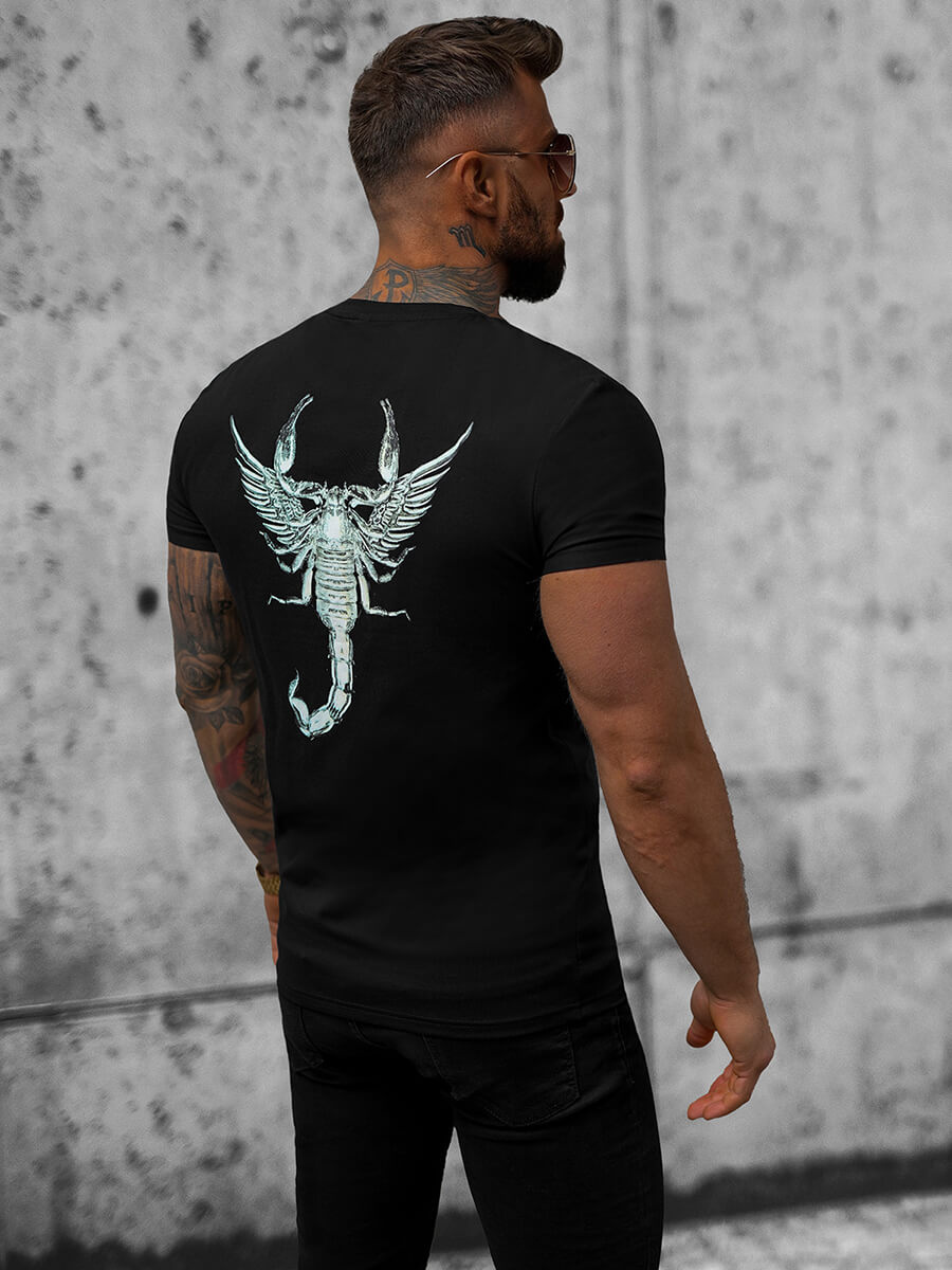 Koszulka pochodzi z naszej najnowszej kolekcji. Ma kontrastową wstawkę na przodzie i dużą, rzucającą się w oczy grafikę na plecach w kształcie skorpiona. T-shirt posiada fason typu slim fit, czyli dopasowany do sylwetki. Został on wyprodukowany z wysokiej jakości bawełny z domieszką elastanu, dzięki czemu jest wygodny w noszeniu, przyjemny w dotyku, nie rozciąga się i nie gniecie.