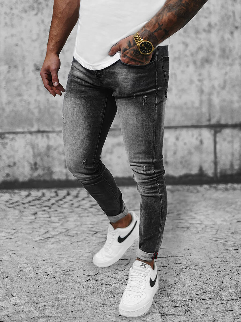 Jeansy mają fason typu rurki. Jego cechą charakterystyczną są wąskie nogawki. Po bokach oraz z tyłu znajdują się kieszenie, do których można schować smartfona, klucze czy portfel. Przetarcia zdobiące nogawki nadają im ciekawego wyglądu. Jeansy zostały wykonane z bawełny, poliestru, wiskozy oraz elastanu, dzięki czemu są wygodne w noszeniu, nie gniotą się, nie rozciągają i ładnie dopasowują się do sylwetki.