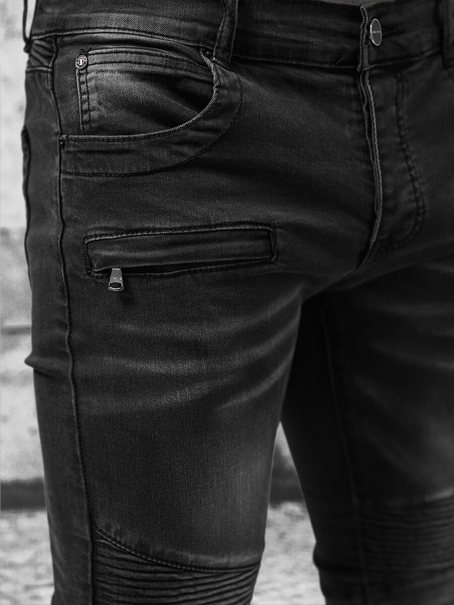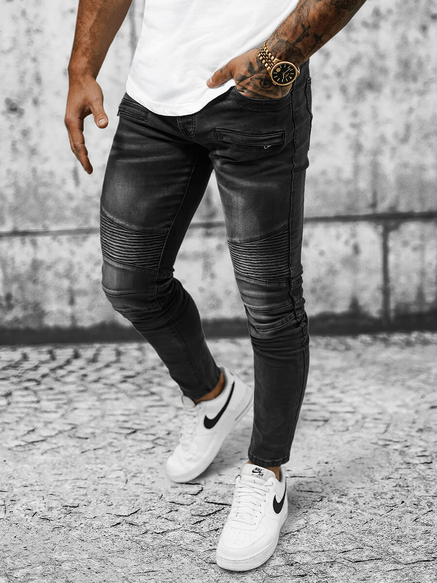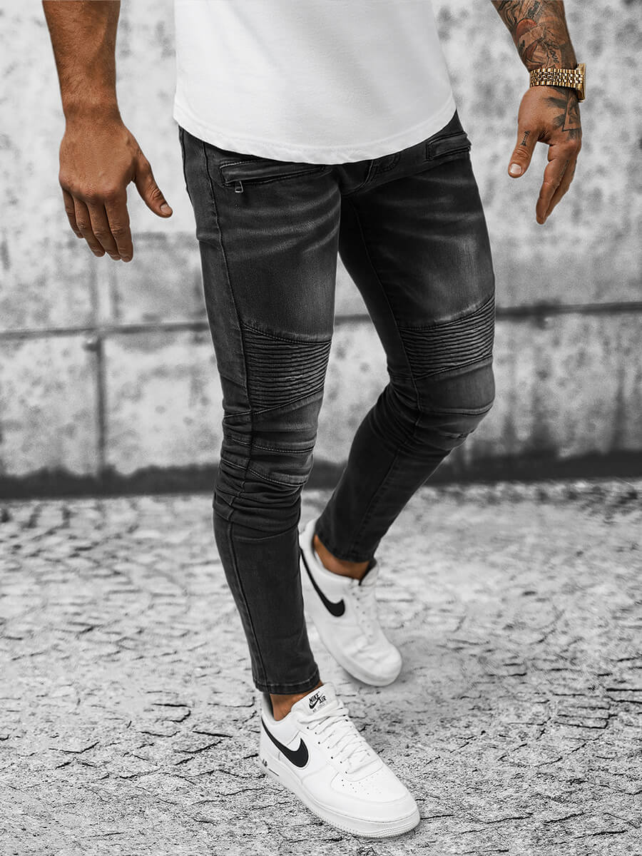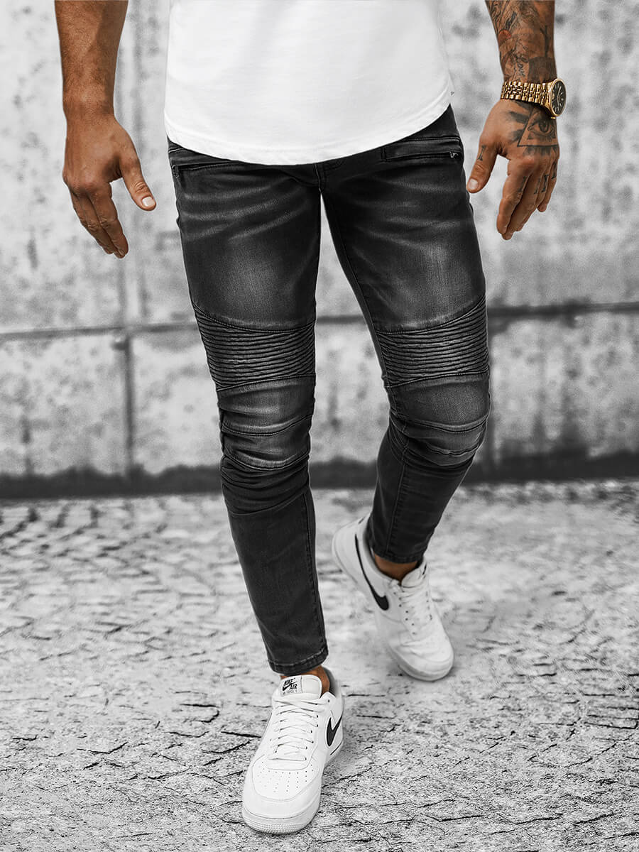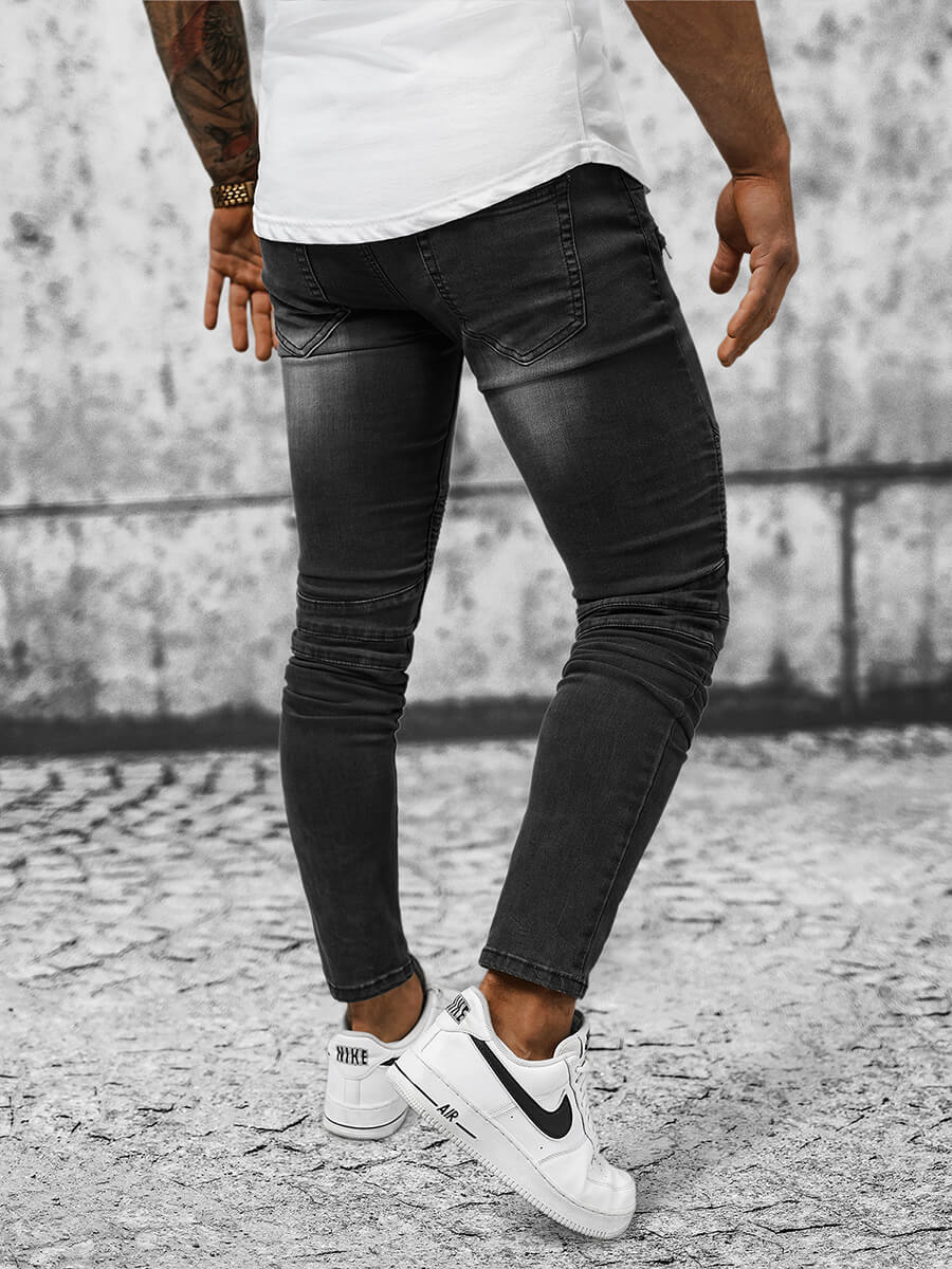 Spodnie mają fason typu slim fit, czyli z wąskimi nogawkami. Oryginalnego wyglądu nadają im przetarcia oraz łączenia materiału. Po bokach oraz z tyłu jeansów znajdują się kieszenie, do których można schować różne drobiazgi, takie jak klucze, portfel czy smartfon. Jeansy zostały wykonane z połączenia bawełny, poliestru, wiskozy oraz elastanu, dzięki czemu ładnie dopasowują się do ciała, są wygodne w noszeniu, przyjemne w dotyku, nie gniotą się i nie rozciągają.