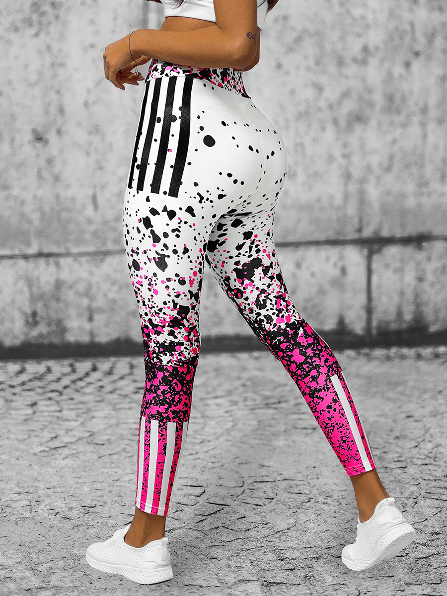 Wkładając takie legginsy możesz mieć pewność, że nikt nie przejdzie obok Ciebie obojętnie. To znakomita propozycja dla wszystkich miłośniczek oryginalnych stylizacji. Zasługą tego jest pokrywający je kolorowy wzór. Legginsy mają pas ze ściągaczem, który chroni przed ich przesuwaniem się podczas noszenia, utrzymując je w jednym miejscu. Wysoki stan skutecznie maskuje mankamenty sylwetki. Legginsy zostały wykonane z poliestru z domieszką elastanu. Sprawia to, że są wygodne w noszeniu, lekkie, ładnie dopasowują się do sylwetki, nie rozciągają się i nie gniotą.