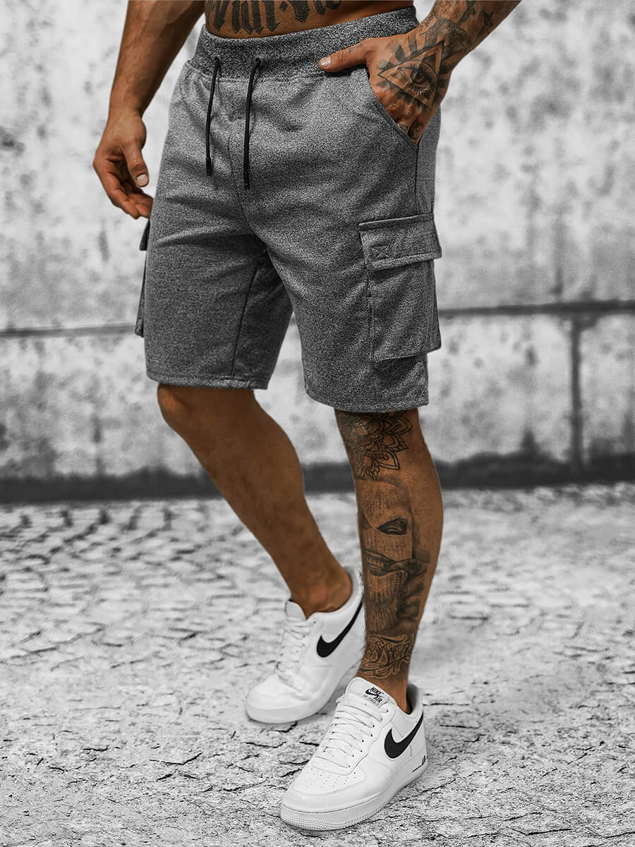 Spodenki pochodzą z nowej kolekcji naszego sklepu internetowego. Mają pas ze ściągaczem gwarantujący wygodę noszenia. Spodenki dresowe posiadają dwie kieszenie z przodu, jedną z tyłu oraz dwie po bokach zapinane na rzepy. Z łatwością pomieszczą one niezbędne drobiazgi, takie jak klucze, telefon czy portfel. Spodenki zostały wyprodukowane z poliestru. Sprawia to, że nie krępują ruchów, nie gniotą się i szybko schną.