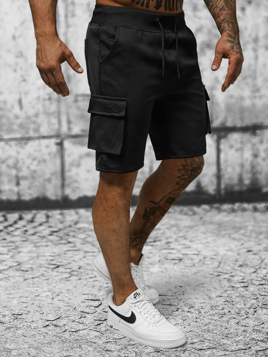 Spodenki pochodzą z nowej kolekcji naszego sklepu internetowego. Mają pas ze ściągaczem gwarantujący wygodę noszenia. Spodenki dresowe posiadają dwie kieszenie z przodu, jedną z tyłu oraz dwie po bokach zapinane na rzepy. Z łatwością pomieszczą one niezbędne drobiazgi, takie jak klucze, telefon czy portfel. Spodenki zostały wyprodukowane z poliestru. Sprawia to, że nie krępują ruchów, nie gniotą się i szybko schną.