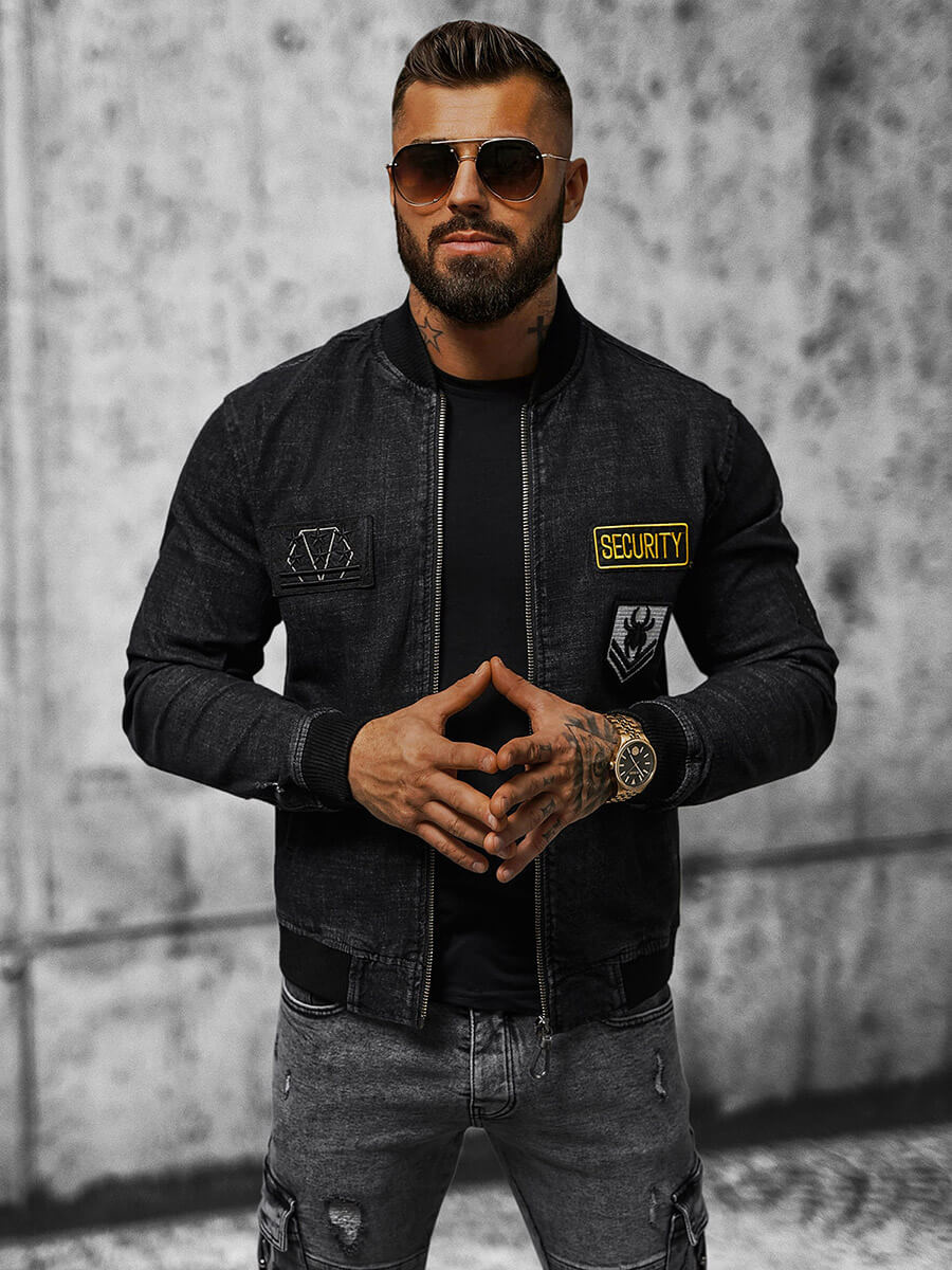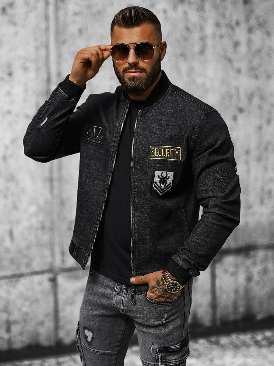 Kurtka męska jeansowa czarna OZONEE NB/MJ509NZ