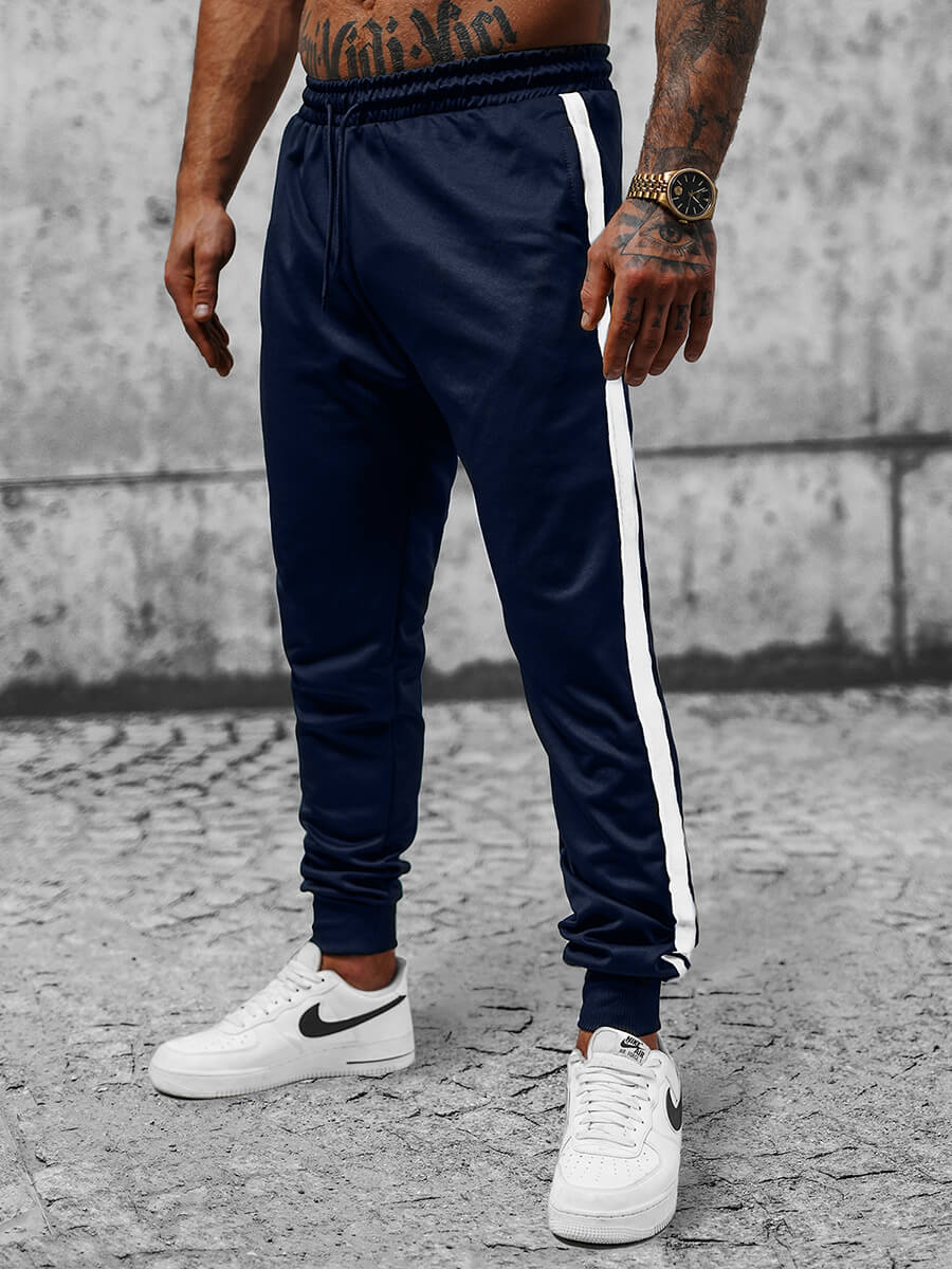 Spodnie pochodzą z najnowszej kolekcji. Oryginalnego wyglądu nadają im kontrastowe wstawki. Pas oraz nogawki dresów zostały wykończone ściągaczami. Po bokach spodni znajdują się praktyczne kieszenie, do których można schować różnego rodzaju drobiazgi, takie jak klucze, portfel czy telefon.