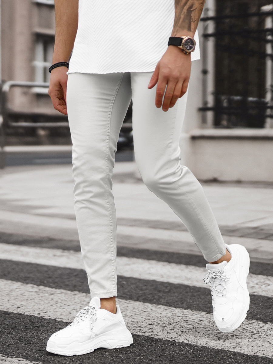 Jeansy mają fason typu slim fit, czyli z wąskimi nogawkami. Z przodu oraz z tyłu znajdują się kieszenie, do których można schować telefon, klucze, portfel czy inne niezbędne drobiazgi. Spodnie zostały wyprodukowane z wysokiej jakości bawełny z domieszką elastanu, dzięki czemu ładnie dopasowują się do sylwetki, są miękkie w dotyku, wygodne w noszeniu i odporne na uszkodzenia oraz zagniecenia.