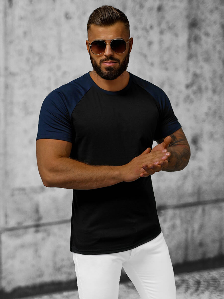 T-shirt pochodzi z najnowszej kolekcji. Ma krótki rękaw i okrągły dekolt typu U-neck. Oryginalnego wyglądu nadają mu kontrastowe łączenia materiałów. Koszulka została wyprodukowana z wysokiej jakości bawełny oraz poliestru. Sprawia to, że ładnie dopasowuje się do sylwetki, jest wygodna w noszeniu, miła w dotyku, nie gniecie się i nadaje się do prania w pralce.
