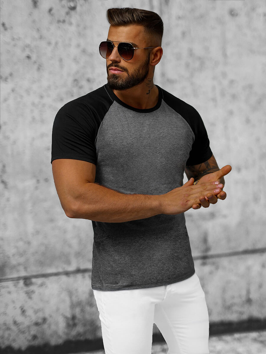T-shirt pochodzi z najnowszej kolekcji. Ma krótki rękaw i okrągły dekolt typu U-neck. Oryginalnego wyglądu nadają mu kontrastowe łączenia materiałów. Koszulka została wyprodukowana z wysokiej jakości bawełny oraz poliestru. Sprawia to, że ładnie dopasowuje się do sylwetki, jest wygodna w noszeniu, miła w dotyku, nie gniecie się i nadaje się do prania w pralce.