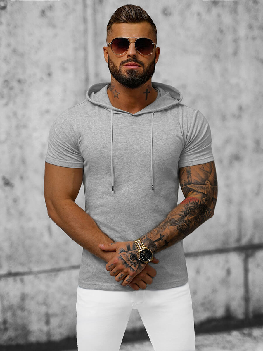 T-shirt z kapturem to ciekawa alternatywa dla klasycznych modeli i dobry sposób na ożywienie casualowej stylizacji. Jest on bardzo uniwersalny i nadaje się na różne okazje. Można go założyć na spotkanie ze znajomymi, spacer czy zakupy. T-shirt ma uniwersalny, ponadczasowy fason, który nigdy nie wychodzi z mody. Bardzo dobrze będzie się komponował z innymi męskimi ubraniami dostępnymi w asortymencie naszego sklepu internetowego, takimi jak jeansy, szorty czy bojówki.