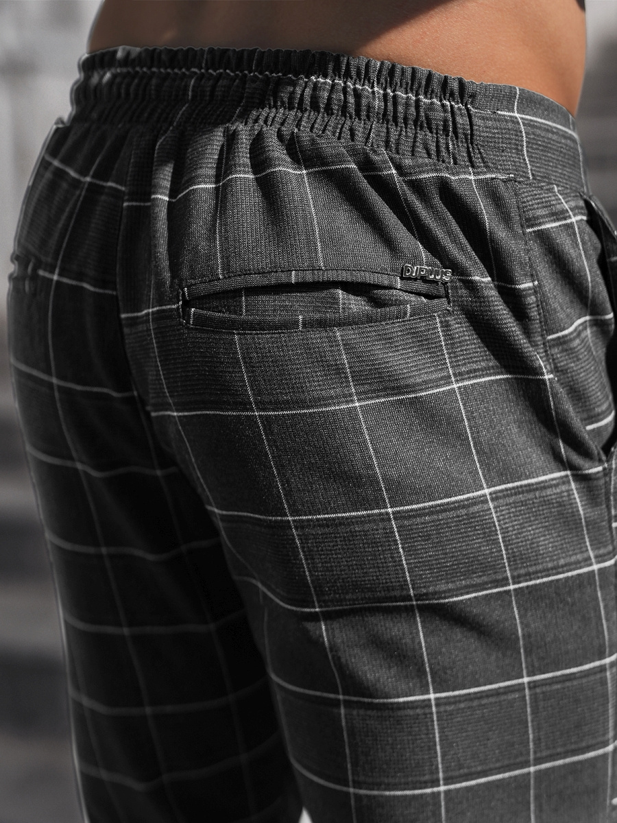 Spodnie pochodzą z najnowszej kolekcji. Ładnie dopasowują się do sylwetki i są wygodne w noszeniu. Spodnie pokrywa uniwersalny, ponadczasowy wzór w kratę, który nigdy nie wychodzi z mody i pasuje każdemu mężczyźnie. Z przodu oraz z tyłu joggerów znajdują się praktyczne kieszenie, do których można schować niezbędne drobiazgi. Pas oraz nogawki spodni zostały wykończone ściągaczami, które nadają im sportowego charakteru.