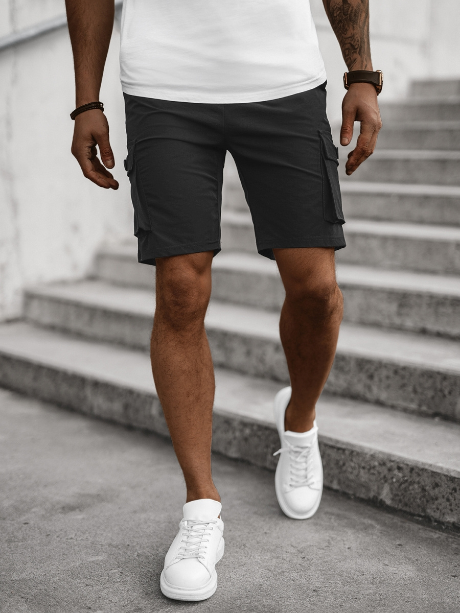 - SPODENKI MĘSKIE TYPU BOJÓWKI Z NAJNOWSZEJ KOLEKCJI, POSIADAJĄ ŚCIĄGACZ I SZNURKI PRZY PASIE ORAZ KIESZENIE Z PRZODU, PO BOKACH I JEDNĄ Z TYŁU