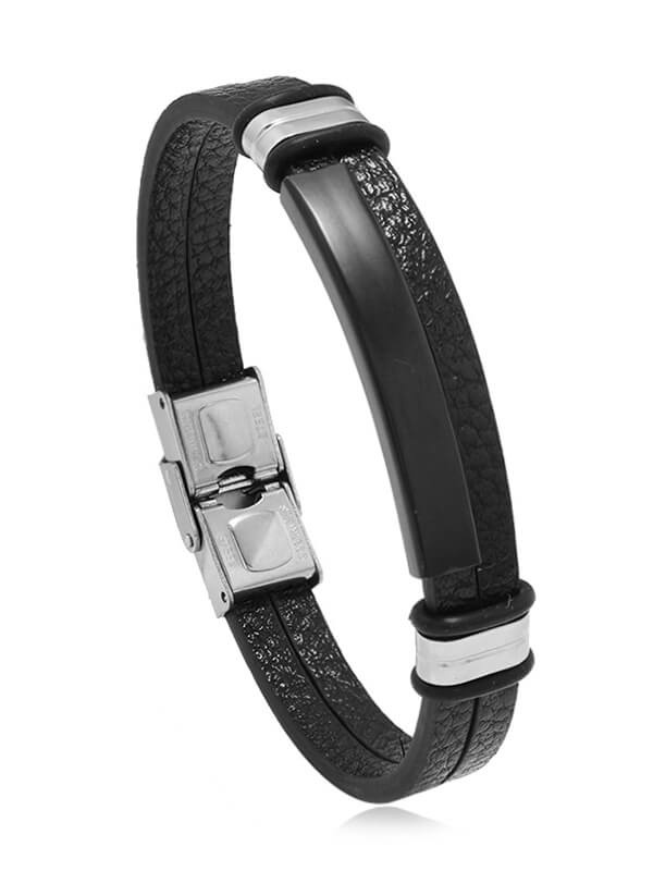 Bransoletka pochodzi z nowej kolekcji. Została wyprodukowana z trwałej, wytrzymałej, odpornej na uszkodzenia, elegancko prezentującej się skóry syntetycznej i posiada efektowne, metalowe wstawki w kolorach czarnym oraz srebrnym. Bransoletka jest zapinana na wygodny w użyciu, metalowy element. Jej obwód to 20 cm.