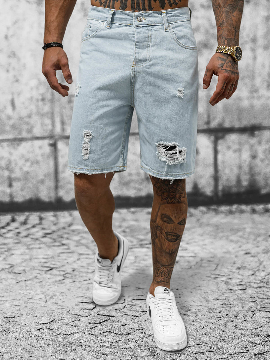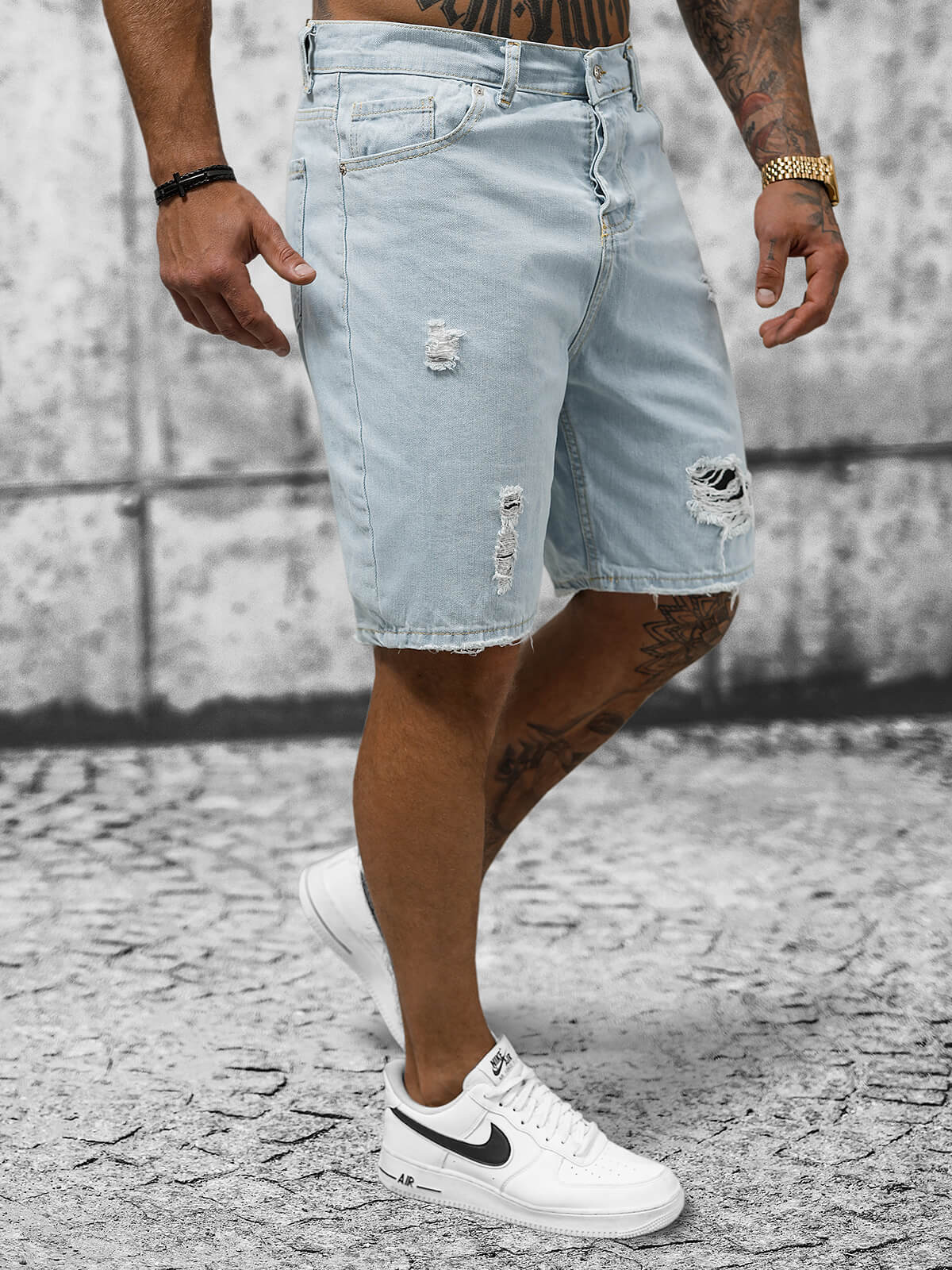 Wzbogać swoją letnią garderobę o męskie jasnoniebieskie spodenki jeansowe Ozonee DP/173!