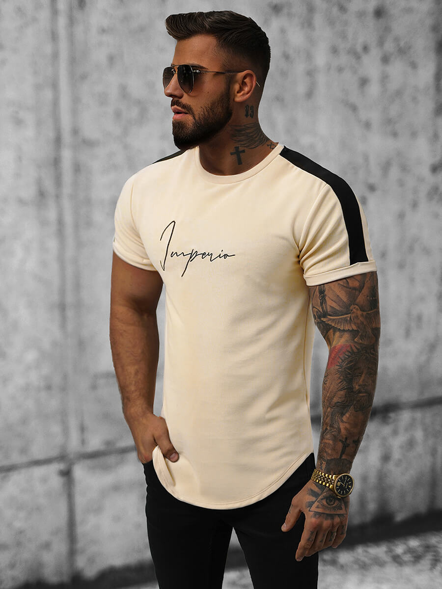 Koszulka pochodzi z naszej najnowszej kolekcji. Ma klasyczny, okrągły dekolt typu U-neck. Na środku t-shirtu znajduje się nadruk w formie napisu, a na rękawach — kontrastowe łączenia materiału. Koszulka została wyprodukowana z wysokiej jakości poliestru z domieszką elastanu, dzięki czemu ładnie dopasowuje się do sylwetki, nie gniecie się i szybko schnie.