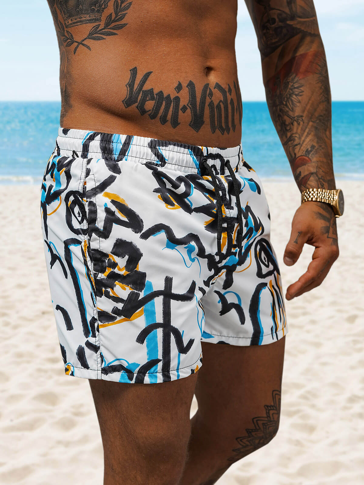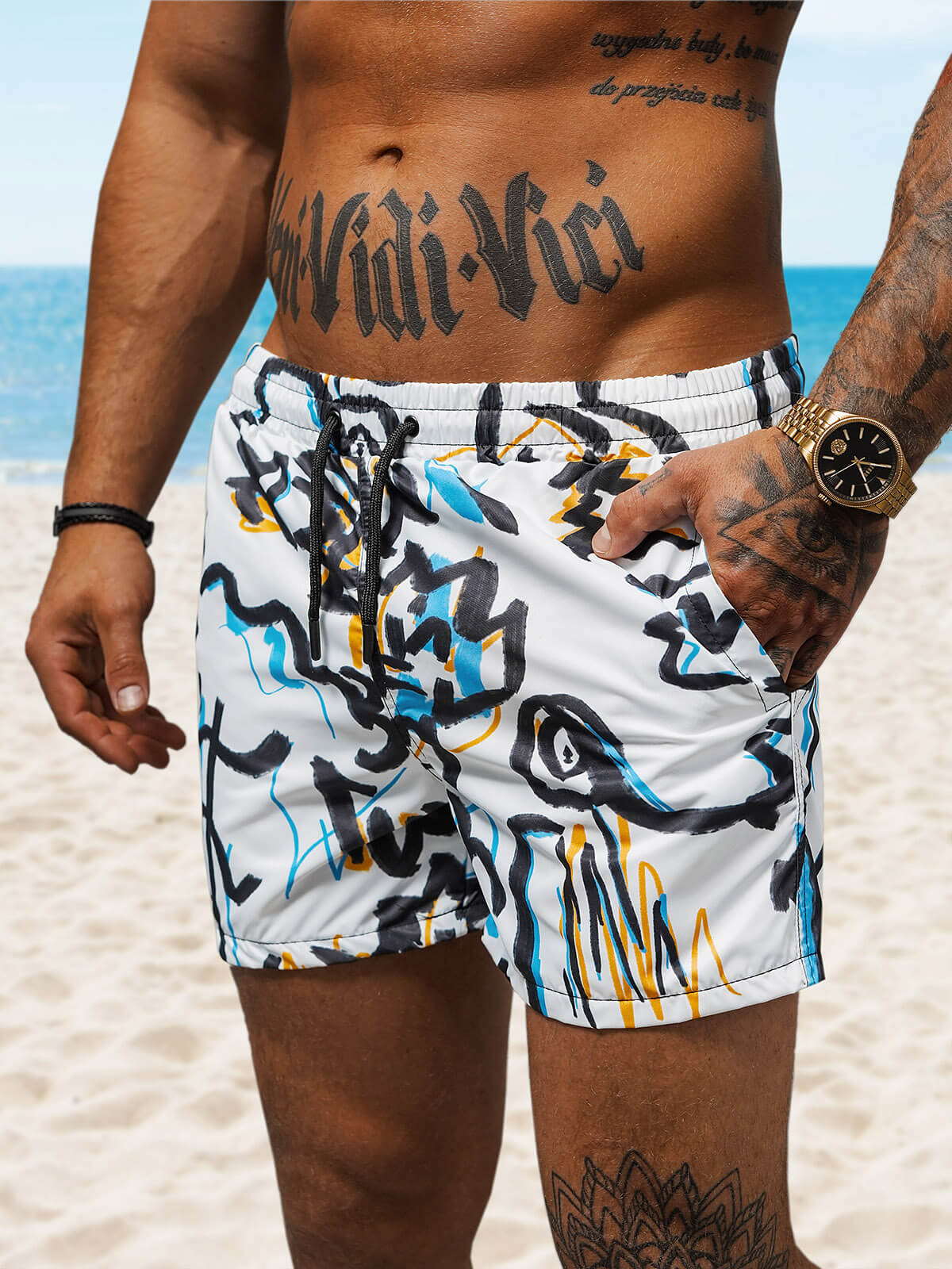 Męskie spodenki na plażę z modnym wzorem