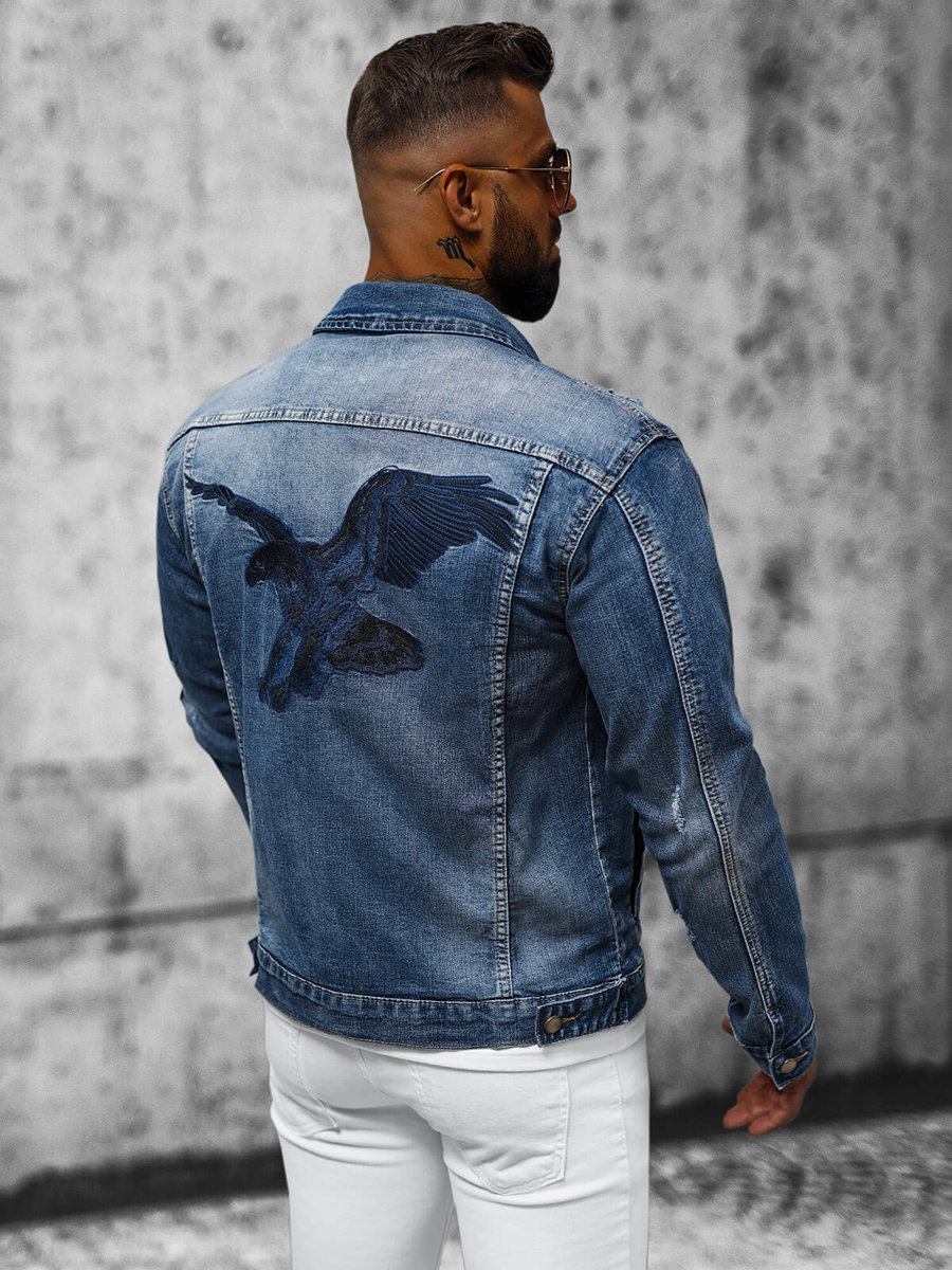 Męska kurtka jeansowa Ozonee NB/MJ507BZ z unikalną aplikacją