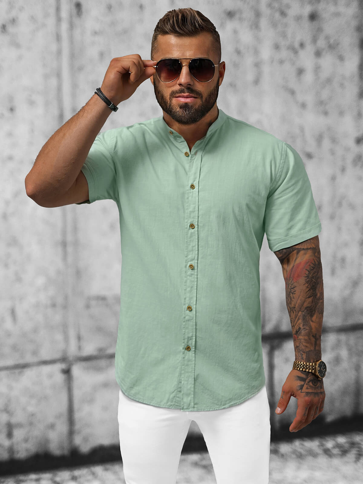 Przedstawiamy elegancką koszulę męską marki Ozonee, model O/V48Z, w jasnozielonym odcieniu, która pochodzi z najnowszej kolekcji. Idealna na ciepłe, letnie dni dzięki lekkiej i przewiewnej tkaninie.
