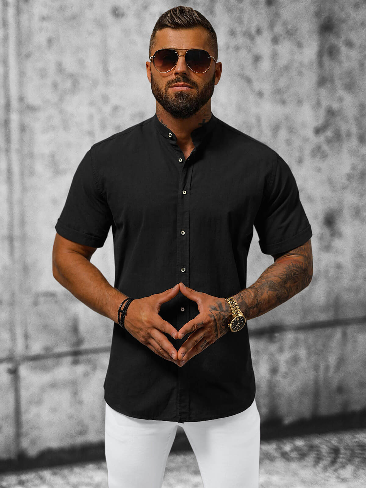 Przedstawiamy elegancką koszulę męską marki Ozonee, model O/V50, w klasycznym, czarnym kolorze, która pochodzi z najnowszej kolekcji. Idealna na ciepłe, letnie dni dzięki lekkiej i przewiewnej tkaninie.