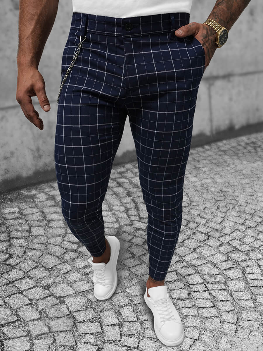 Prezentujemy Ci wyjątkowe spodnie męskie typu chino od Ozonee, model DJ/550171 z najnowszej kolekcji. Te spodnie zwracają na siebie uwagę dzięki modnemu wzorowi w kratkę, zamkom na nogawkach i ozdobnemu, odpinanemu łańcuchowi. Są idealne na różne okazje - od nieformalnych spotkań ze znajomymi, przez codzienne wyjścia do miasta, aż po eleganckie przyjęcia.