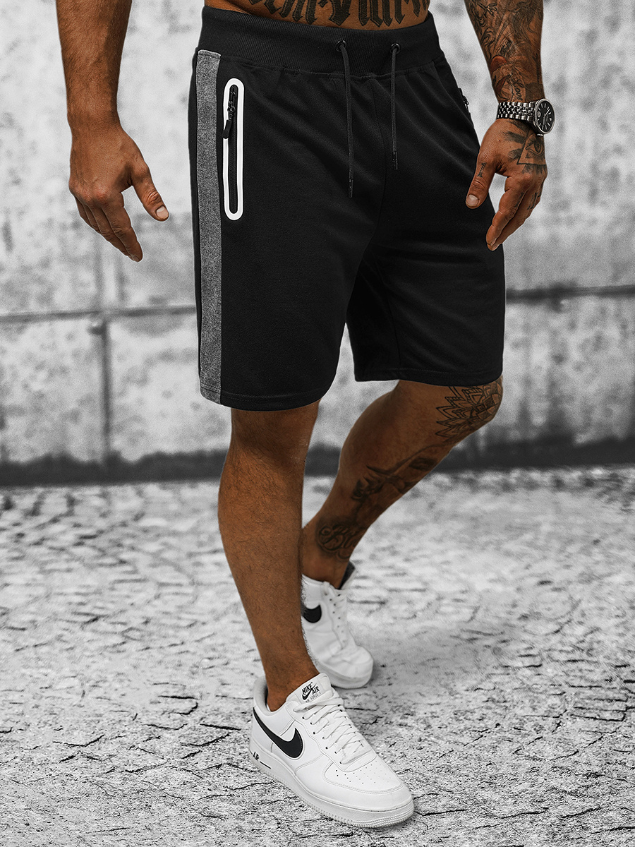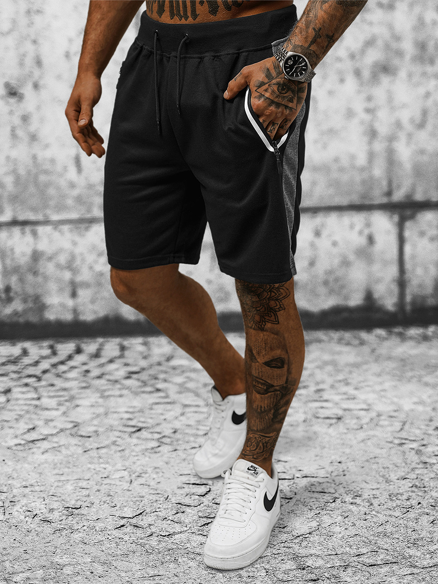 Spodenki pochodzą z naszej nowej kolekcji. W pasie mają praktyczny ściągacz ułatwiający dopasowanie ich do sylwetki. Po bokach znajdują się kieszenie zapinane na zamek błyskawiczny, do których można schować różne drobiazgi, takie jak klucze, portfel czy smartfon. Oryginalnego wyglądu nadają im kontrastowe wstawki. Spodnie zostały wyprodukowane z wysokiej jakości poliestru, dzięki czemu nie gniotą się, szybko schną, są odporne na uszkodzenia i ładnie układają się na ciele.