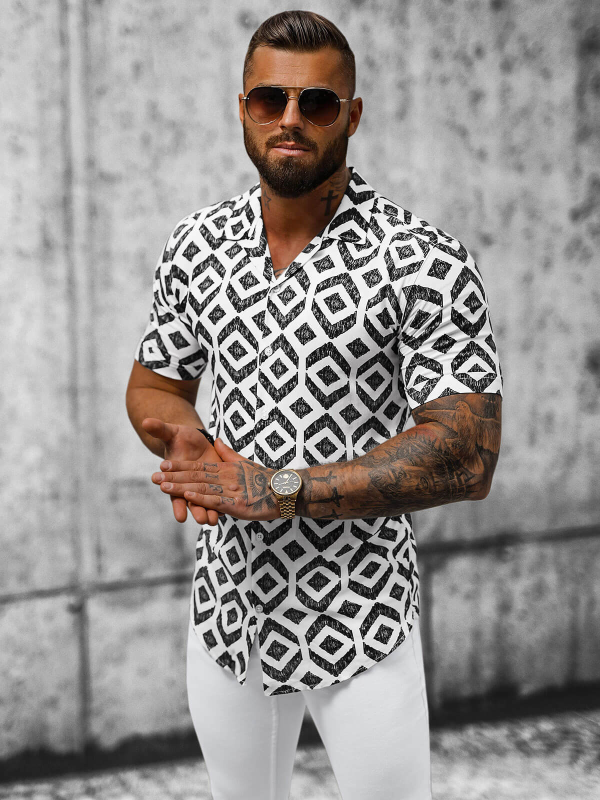 Prezentujemy nowoczesną męską koszulę prosto z najnowszej linii naszych produktów, która z pewnością stanie się nieodzownym elementem garderoby każdego mężczyzny. Koszula posiada klasyczne zapinanie na guziki, a krótkie rękawy sprawiają, że jest doskonałym wyborem na ciepłe dni.