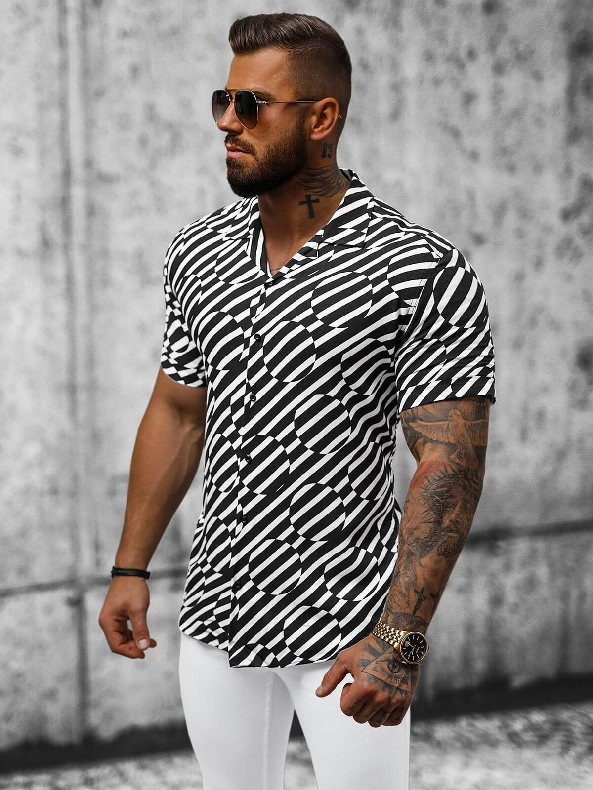 Unikalna i elegancka - męska koszula z krótkim rękawem w kolorze czarno-białym Ozonee E/1400/154 z najnowszej kolekcji